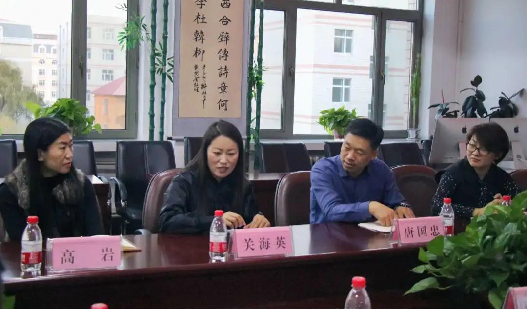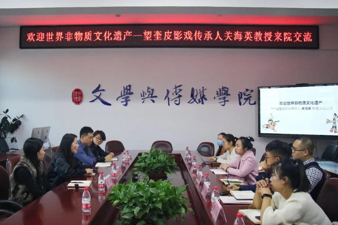 10月29日下午,PP电子游戏网站举办望奎皮影戏专题座谈,关海英教授应邀莅临PP电子,学院党总支书记唐国忠、院长高岩、党总支副书记赵林楠、各年级辅导员及师生代表参加座谈。