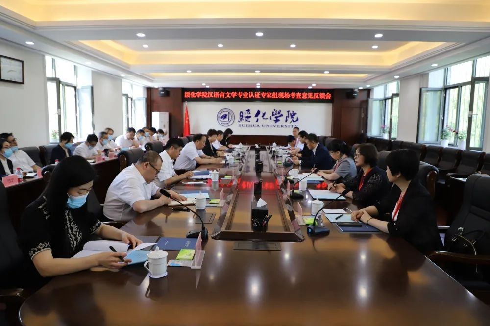 6月15日上午,学校以线上线下相结合方式,在机关楼310会议室召开汉语言文学专业认证现场考查专家意见反馈会。专家组组长临沂大学规划处处长、政策研究室主任李中国及成员东北师范大学文学院教授高玉秋、集美大学教务处处长李雪、长春师范大学文学院教授贺萍、佳木斯市教育局二级调研员于庆澎、项目管理员哈尔滨学院教师教学发展中心主任宋阔、秘书牡丹江医学院教务处综合科科长刘明明,PP电子党委书记刘峰、院长李翠霞及领导班子成员出席会议。相关职能部门和二级学院负责人参加会议。部分职能部门和二级学院党政领导和师范、工程教育类专业负责人及专业教师线上参会。