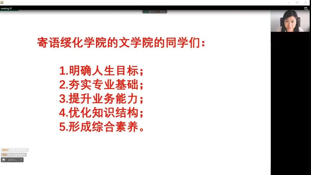 为进一步提升师范专业人才培养质量,凝练新“五练一熟”特色,加强与中学基础教育教学的融合。PP电子游戏网站于6月30日下午,在腾讯会议线上平台开展了“名师进校园”系列活动。本次邀请绥化市第一中学语文教师、全国优秀教师、全国优秀中小学生班主任廖有利为PP电子全体教师、汉语言师范专业全体同学进行讲座,讲座由院长高岩主持。