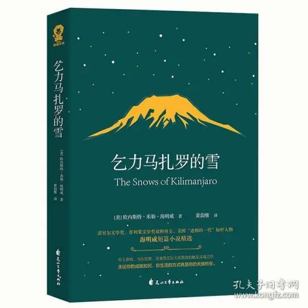 《乞力马扎罗的雪》是海明威的一部短篇小说,是对于一个临死前的人的精彩描述。故事主要讲述一个作家哈里去非洲狩猎,途中汽车抛锚,皮肤被刺划破,染上坏疽病。他和他的妻子在等待一架飞机来把他送到医院治疗。小说围绕“死亡”和“即将死亡”来写,但根本的主题是哈里回到过去,从过去走到现在的历程回顾。哈里热爱这个世界,他有很多经历,跟不同女人的经历,以及自己所从事的不同职业的经历,他都想写下来但却没来得及写,他最终没有能达到心中的目标,死前,他悔恨至极。故事的结尾,他死于一个梦境:他乘着飞机,向非洲最高峰——乞力马扎罗的山顶飞去。