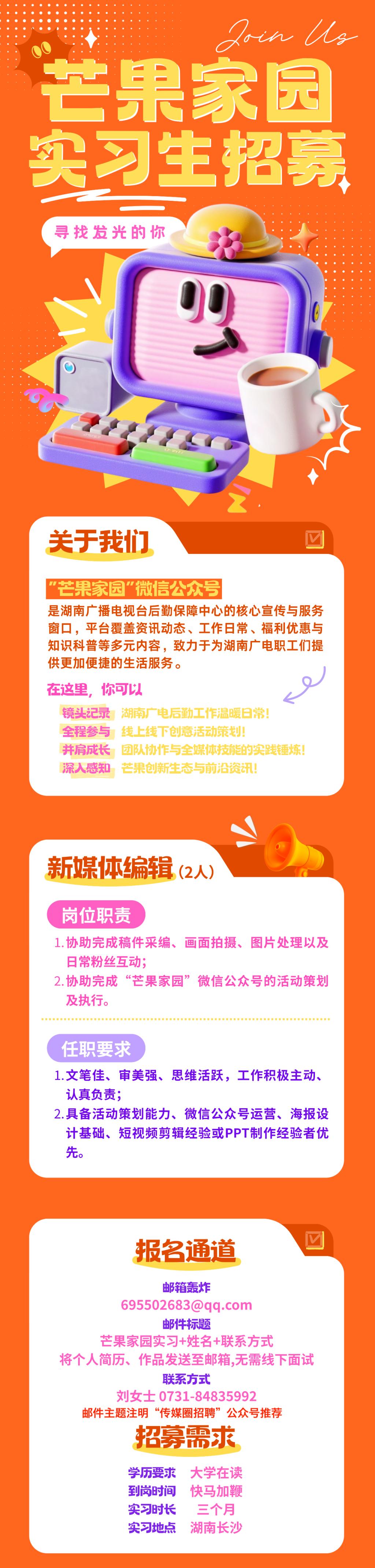 就业指导丨芒果家园招聘新媒体编辑实习生!