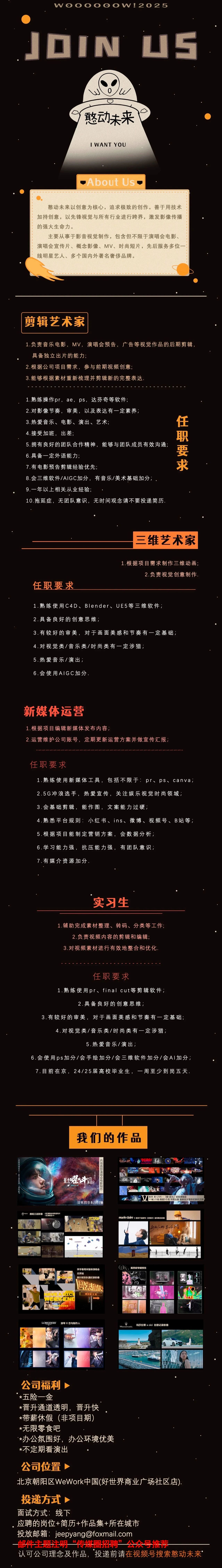 就业指导丨演唱会电影制作公司憨动未来招聘公告!
