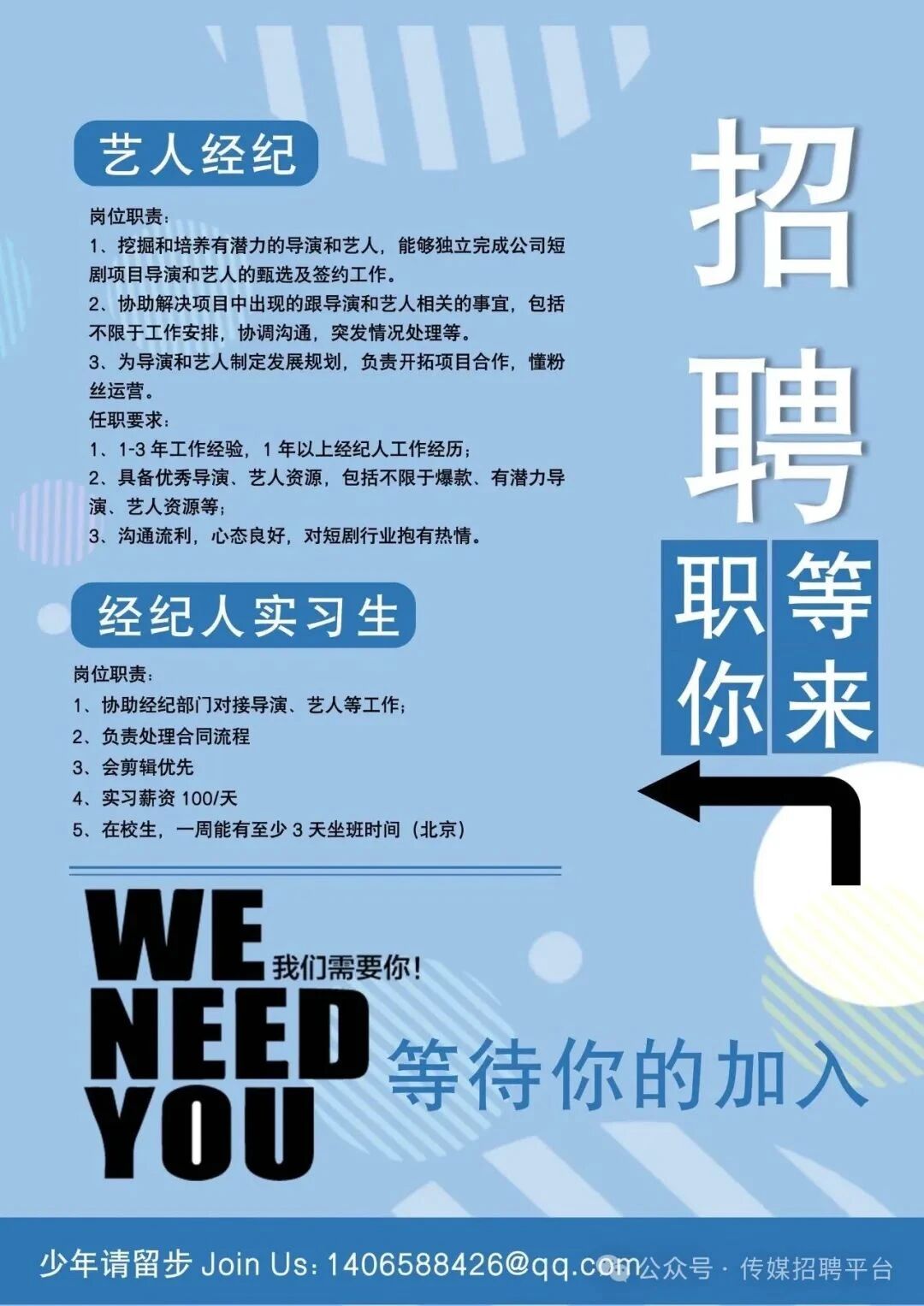 就业指导丨北京传媒公司招聘艺人经纪、经纪人实习生