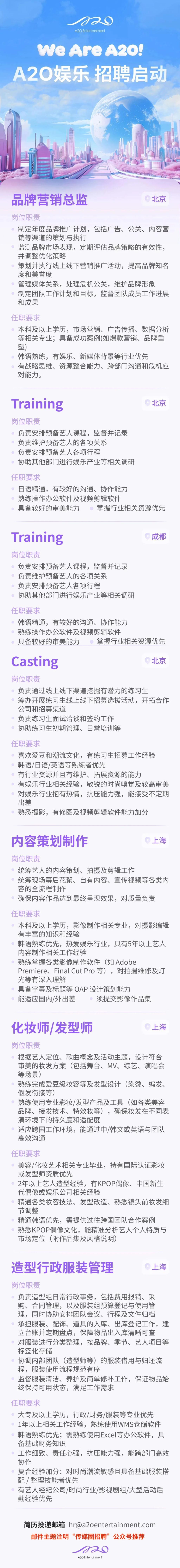 就业指导丨李秀满A2O娱乐(北京、上海、成都)招聘公告!