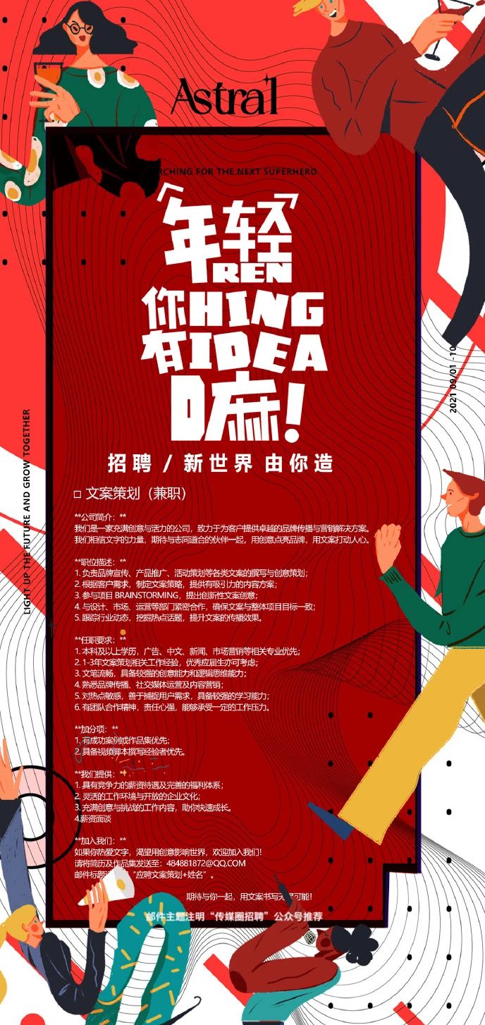 就业指导丨毛晓彤工作室招聘宣传经理!