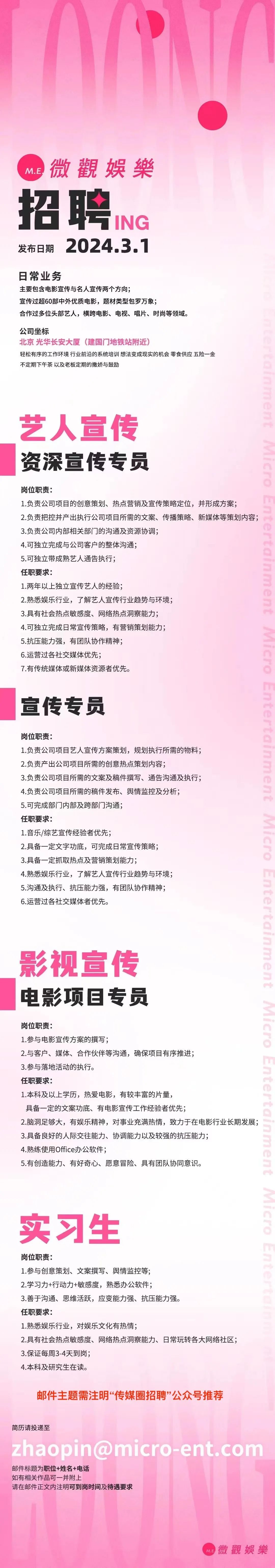 就业指导丨微观娱乐招聘公告(4大岗位 含实习)
