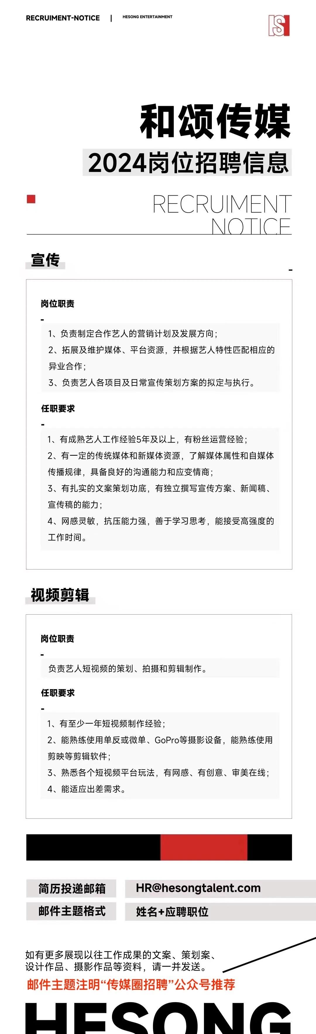 就业指导丨和颂传媒招聘宣传、视频剪辑!