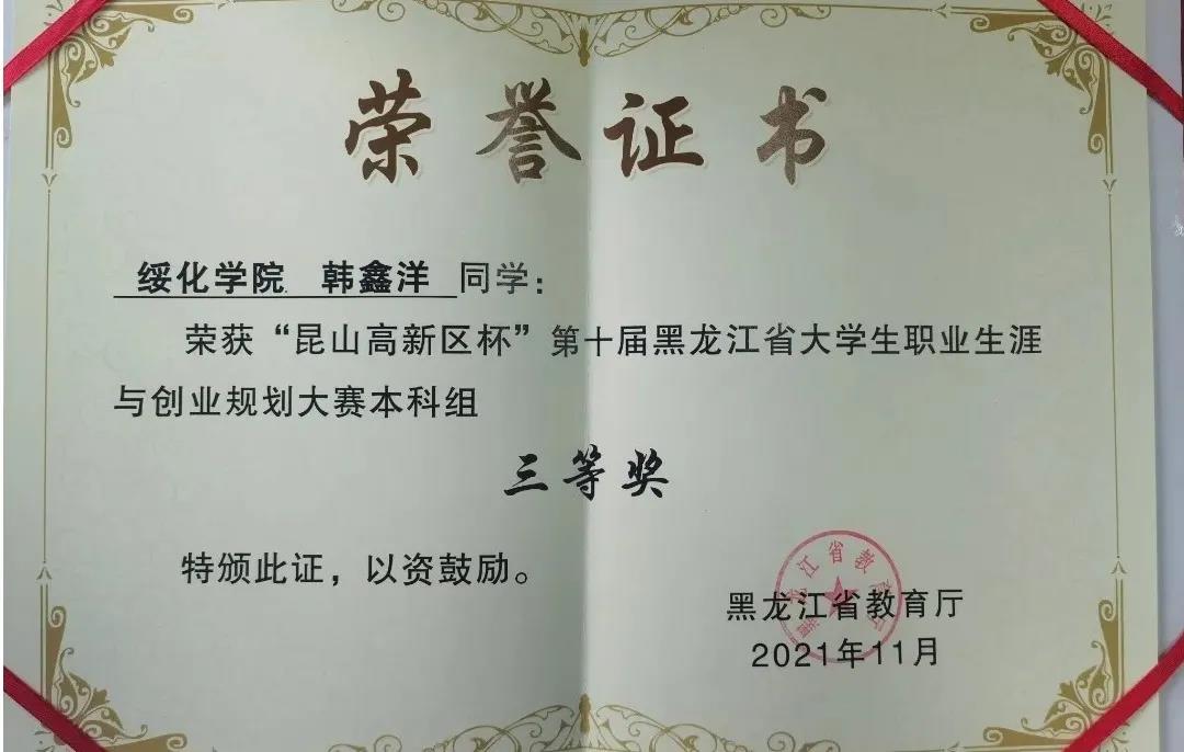 11月26日,由省教育厅主办的第十届黑龙江省大学生职业生涯与创业规划大赛落下帷幕。PP电子2018级汉语言文学专业学生韩鑫洋在大赛中表现突出、斩获佳绩。