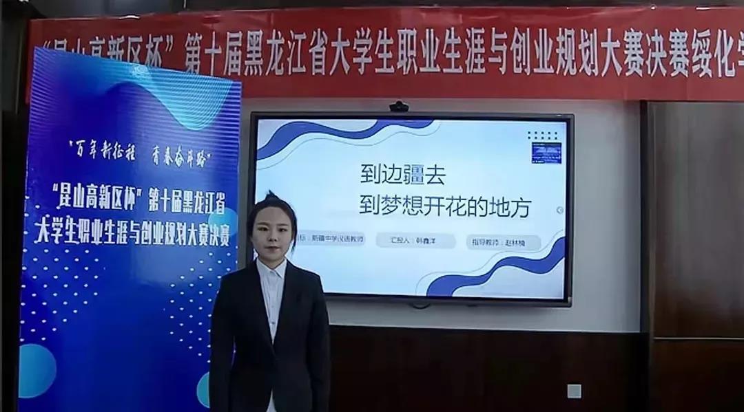 指导教师赵林楠介绍,韩鑫洋参赛作品展现了她作为新时代大学生怀揣着建设西部教育行业的理想,决心扎根边疆,以做一名援疆教师作为自己的职业规划理想,愿为新疆教育事业贡献自己的微薄之力,承担起“支援西部”“三支一扶”的责任与使命。非常具有创新性和实干性,展现了大学生的蓬勃朝气和对未来的期望。