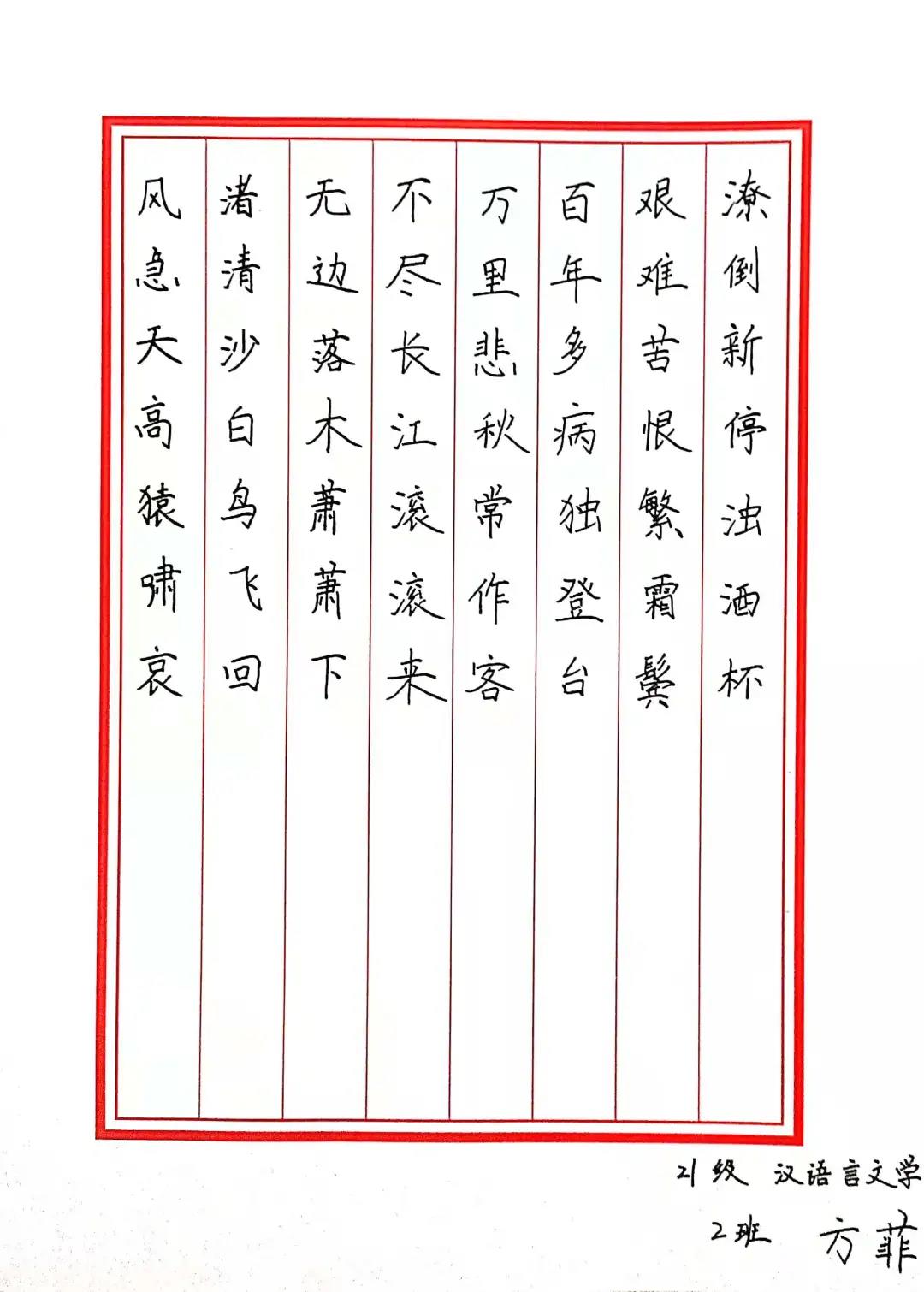 汉语言文学二班 方菲 |