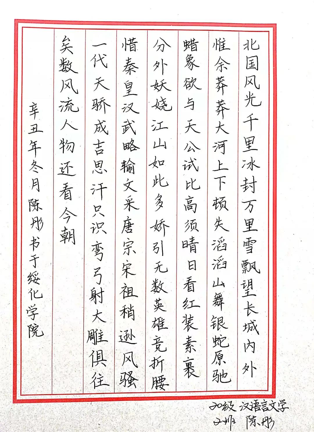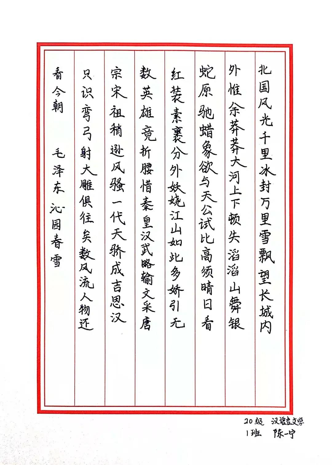 汉语言文学一班 陈一宁 |