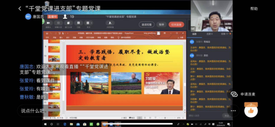 6月28日下午,PP电子游戏网站党总支开展了“千堂党课进支部”专题党课活动,学院党总支书记唐国忠为党总支全体党员作了《学思践悟,履职尽责,在疫情防控中感悟中国共产党的使命初心》专题党课,院长高岩主持,全体教师党员参加。