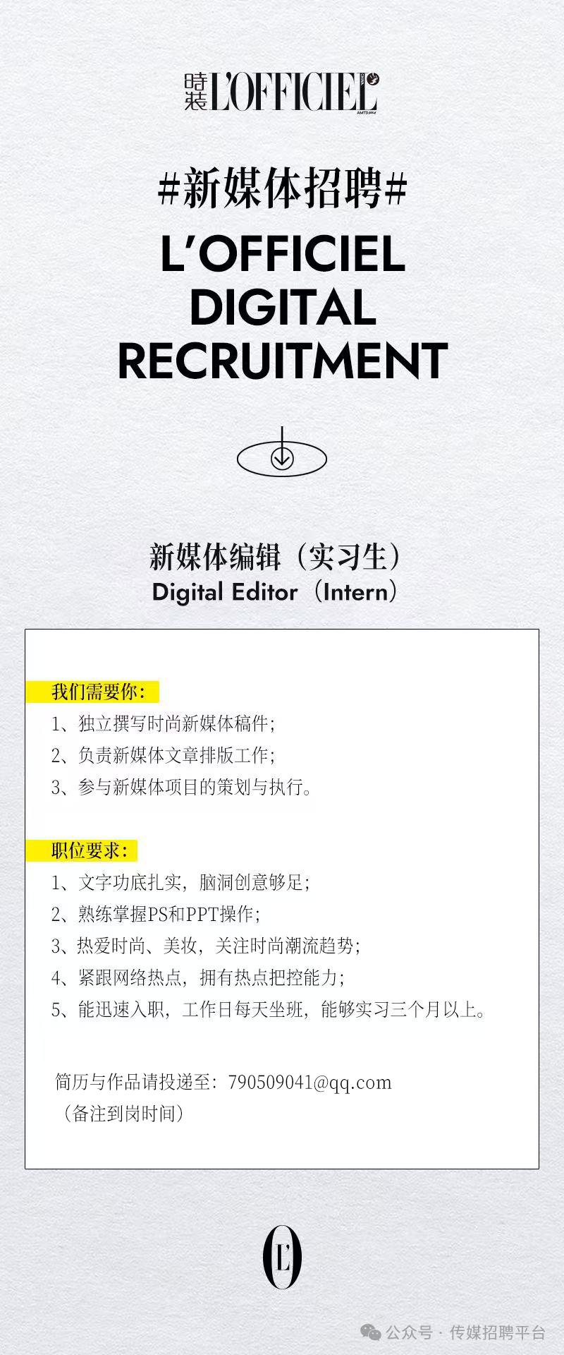 就业指导丨《时装L'OFFICIEL》招聘实习生