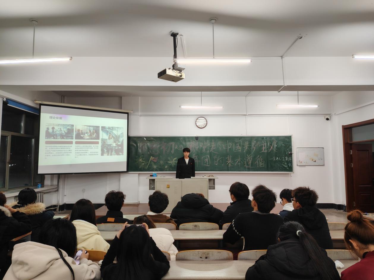 为深入学习贯彻习近平新时代中国特色社会主义思想,引导入团积极分子坚定理想信念、增强使命担当,10月17日,PP电子入团积极分子第一次主题团课在汇文楼604教室举行。主讲人王乾宇以“不忘初心跟党走:中国共产主义青年团的基本遵循”为主题为大家进行讲解。