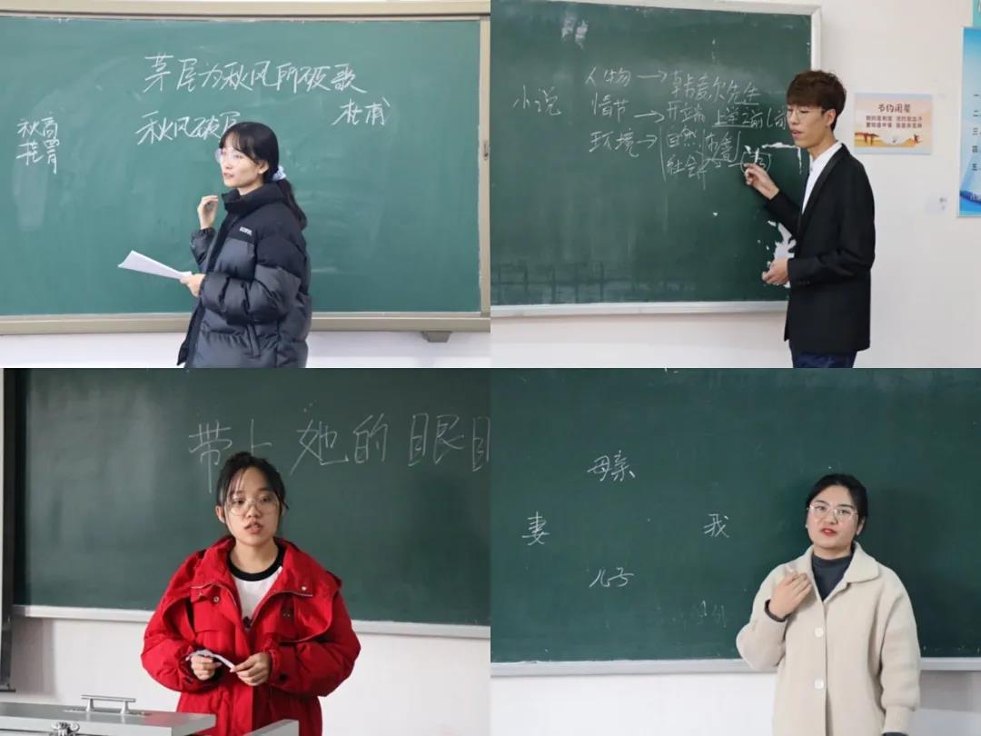 本次竞赛内容包括教学设计、课件制作、模拟试讲、教学板书、即兴讲演五个环节。由参赛学生抽现场抽取试题并依次作答。随后,学生根据自己准备的讲课内容进行试讲。参赛学生选讲的内容多种多样,涉及诗歌、小说、古文等多个方面。选手们凭借着扎实的理论功底和自信赛场表现纷纷赢得了评委老师的赞许。比赛最终,从两个年级中产生了10名选手晋级决赛。