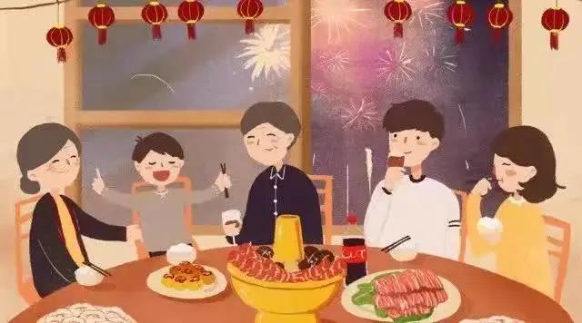 一年一次的年夜饭,是全家都要动员的大餐,家家户户都会摆上平日里很少见的,或是寓意吉祥的菜品:席上一般有鸡(寓意有计)、鱼类(寓意年年有余)、汤圆(寓意团团圆圆)、莲藕(寓意聪明)等菜品以求新年吉利。这也是对来年美好生活的期许。年夜饭,吃的是喜悦,品的是亲情,缕缕饭香中闻到的是家的味道。一年一度的年夜饭对中国人来说是极其重要的,一家老小互敬互爱、共叙天伦,围坐餐桌旁,倍感幸福。