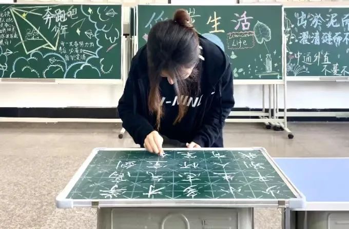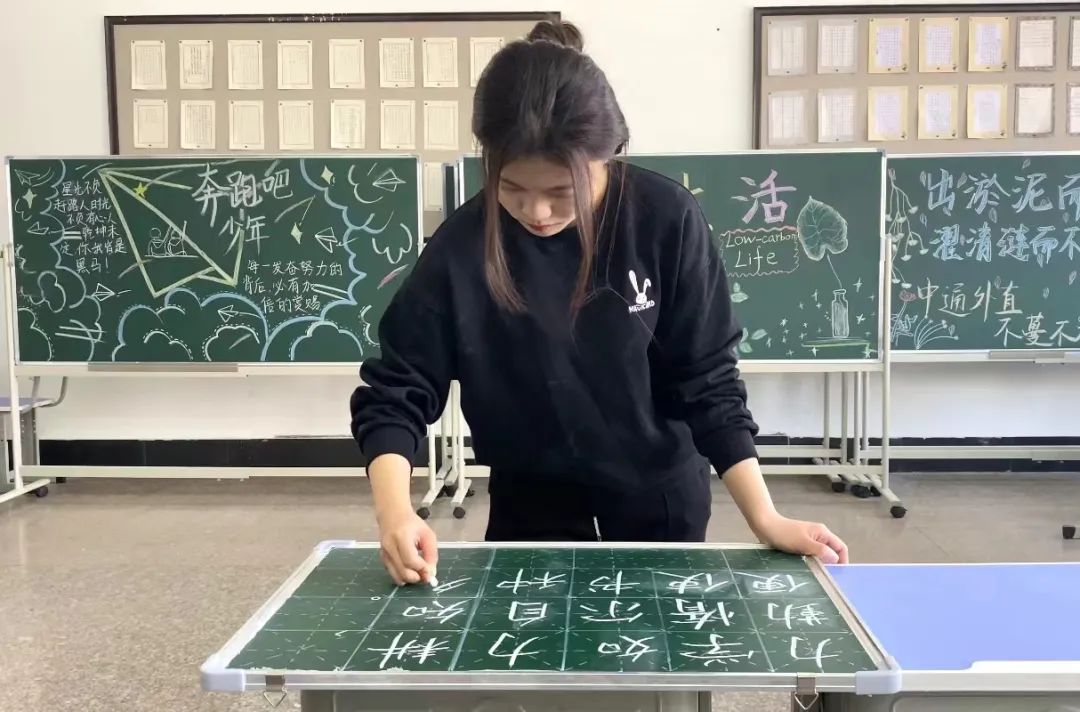 “育人必先律己,教书必先强己。”教师基本功是教师从事教学工作必须具备的最根本的职业技能,是教师完成教学任务的必备素质之一,粉笔字更是体现教师基本功水平的标尺之一。为了提高师范生的职业技能,促进学生专业素养提升,鼓励培育应用型师范人才,PP电子汉语言文学专业师范类学生每周开展黑板字职业技能训练,并挂在教室走廊展览。
