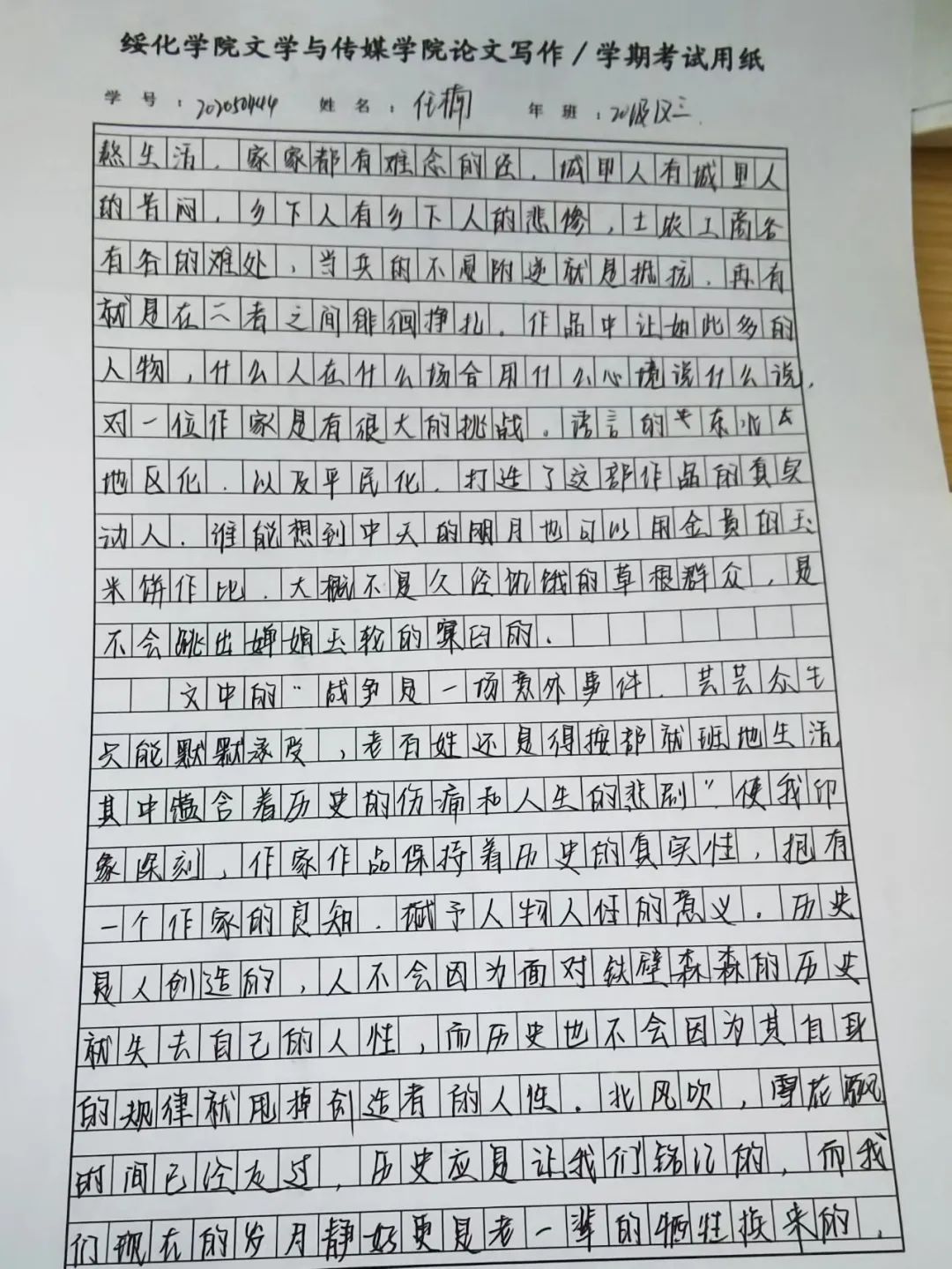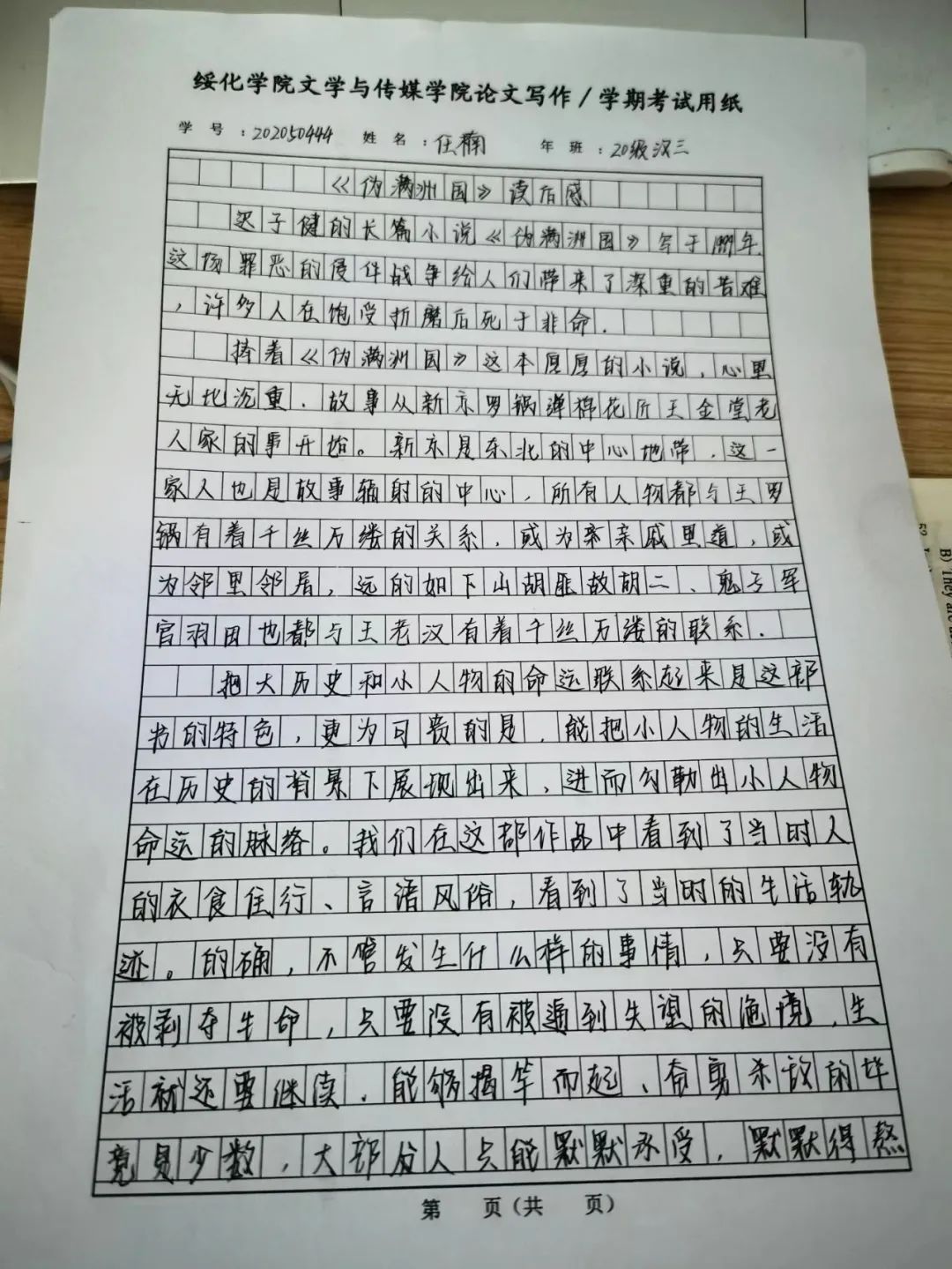 2020级汉语言文学三班任楠