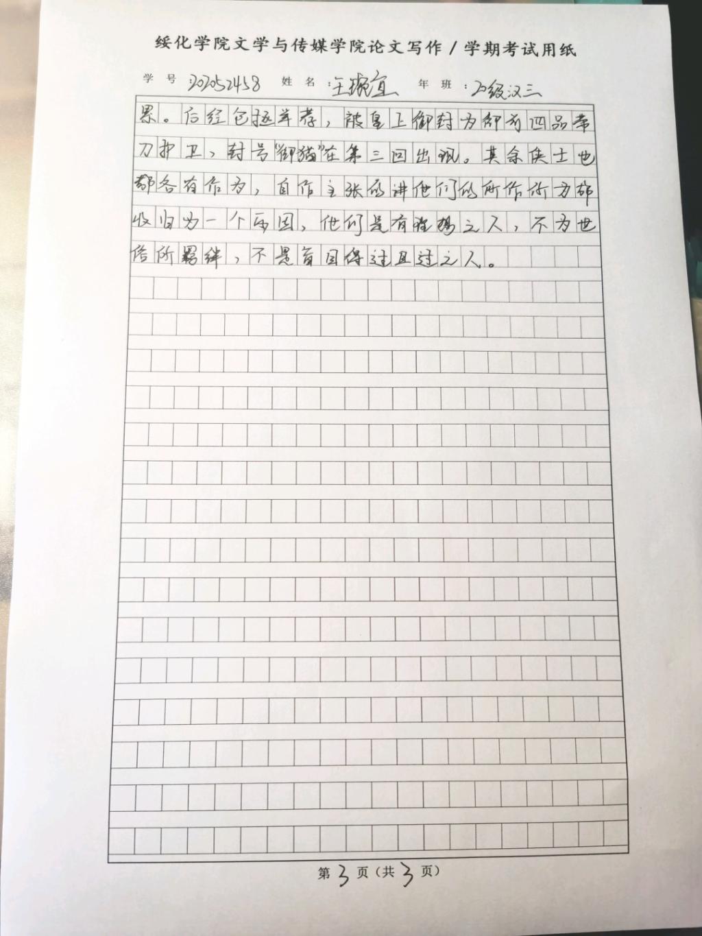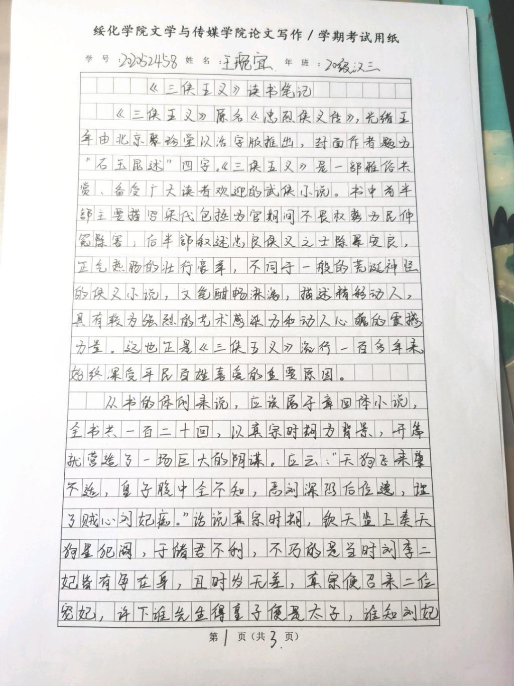 2020级汉语言文学三班王琬宜
