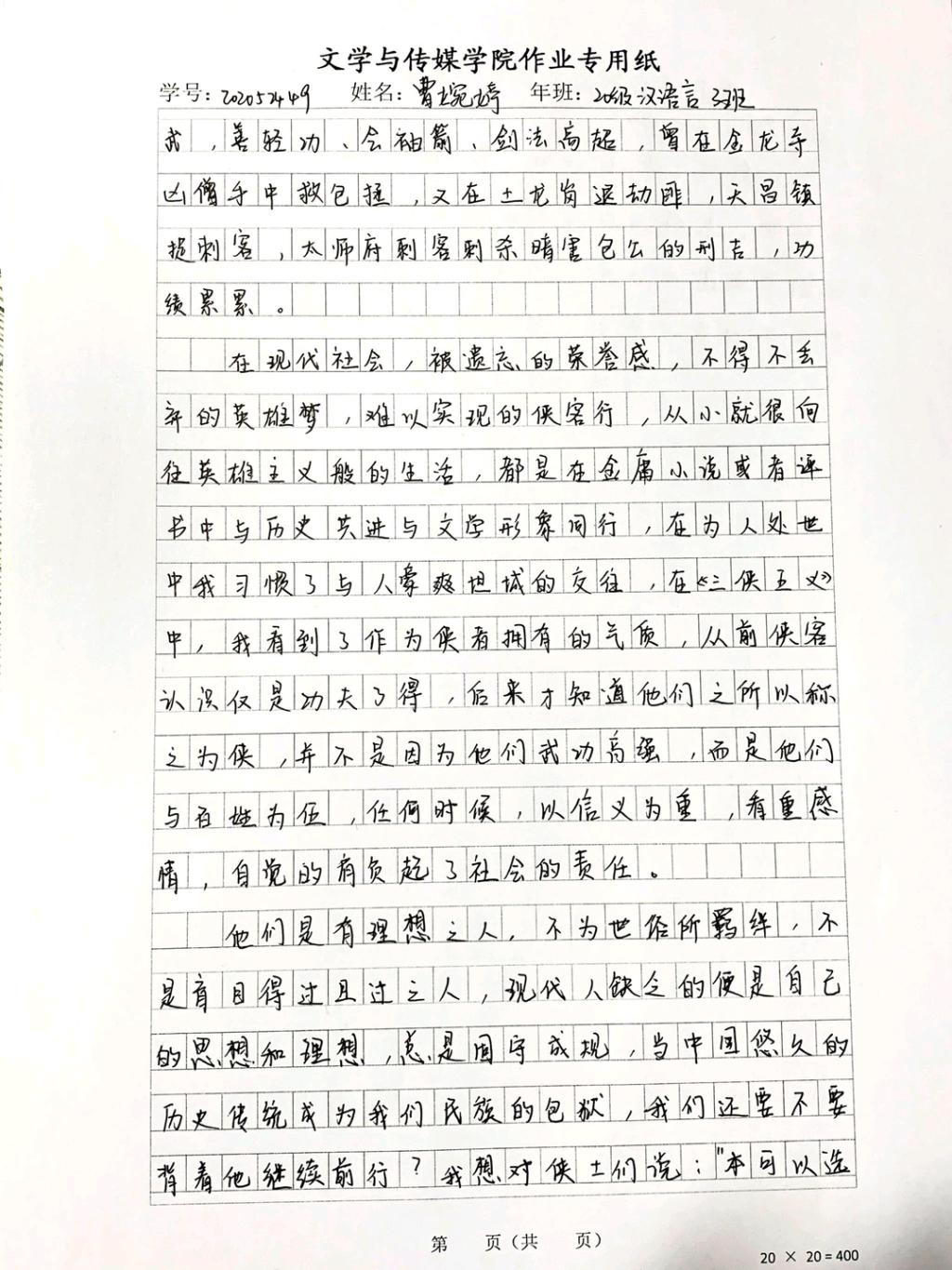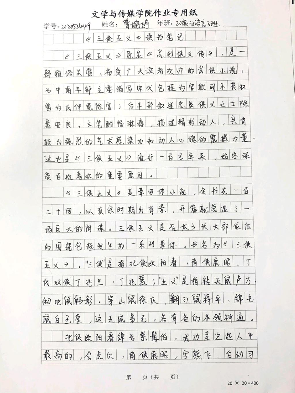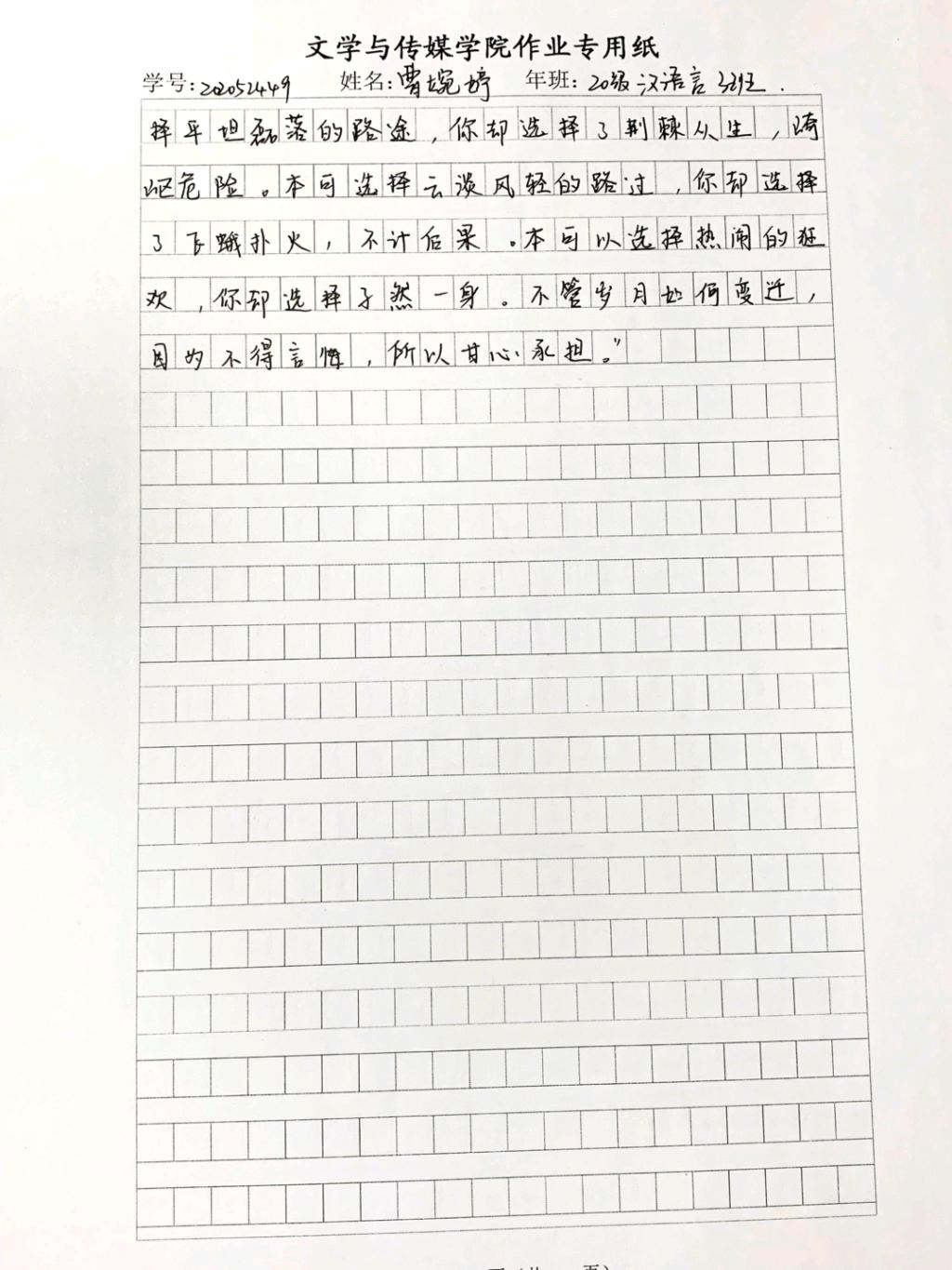 2020级汉语言文学三班曹婉婷