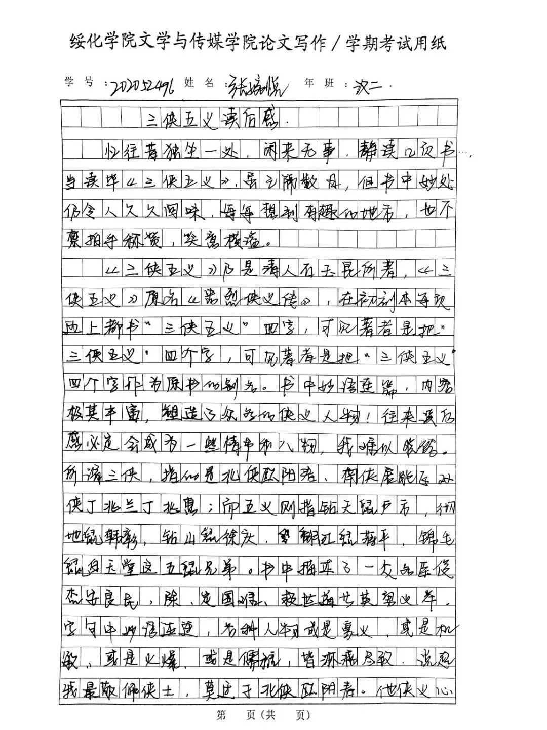 2020级汉语言文学二班张婉悦