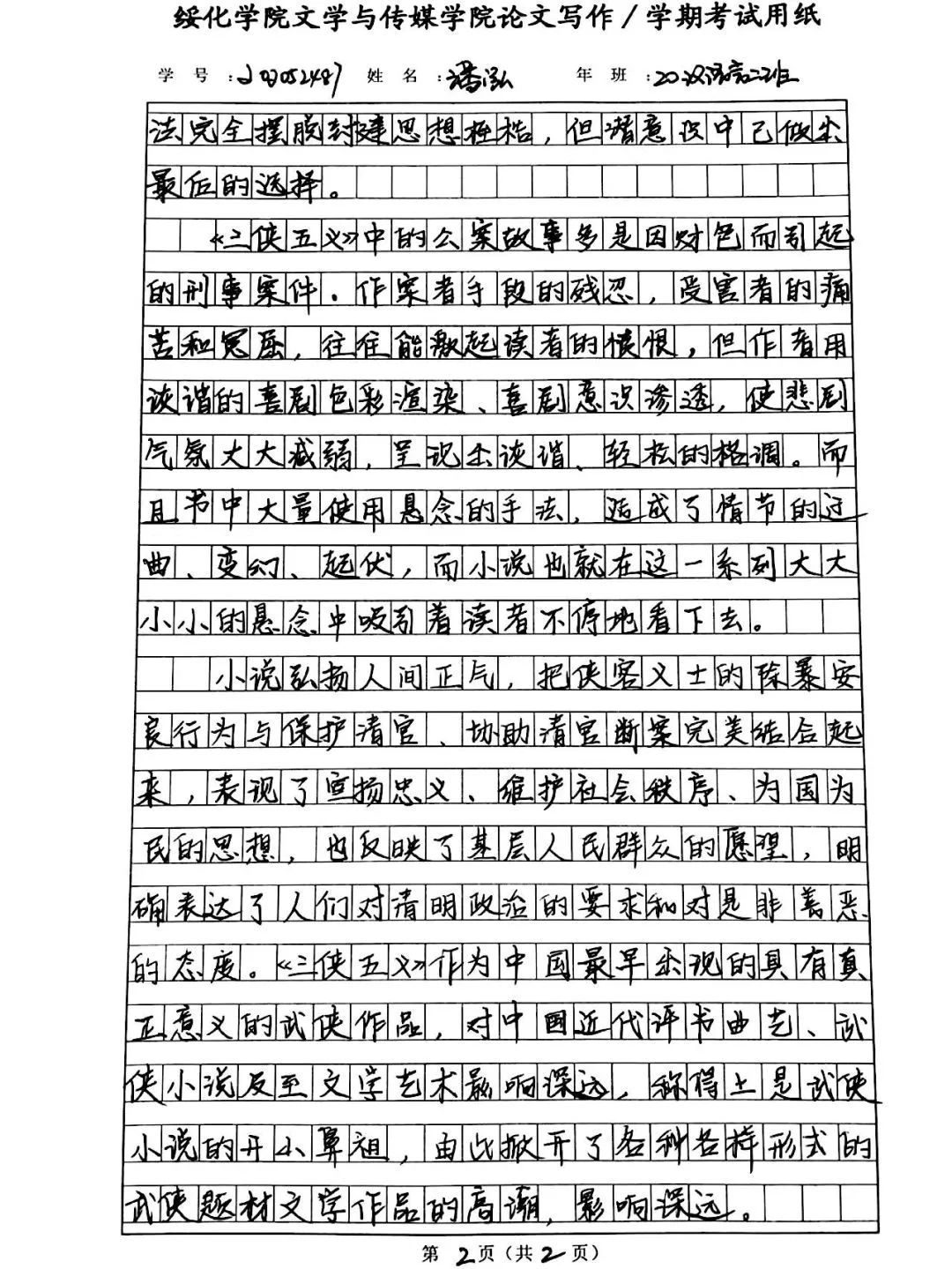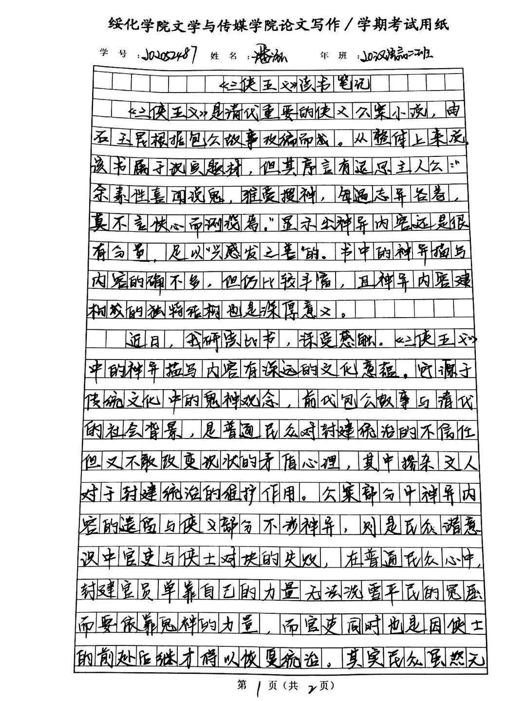 2020级汉语言文学二班潘泓