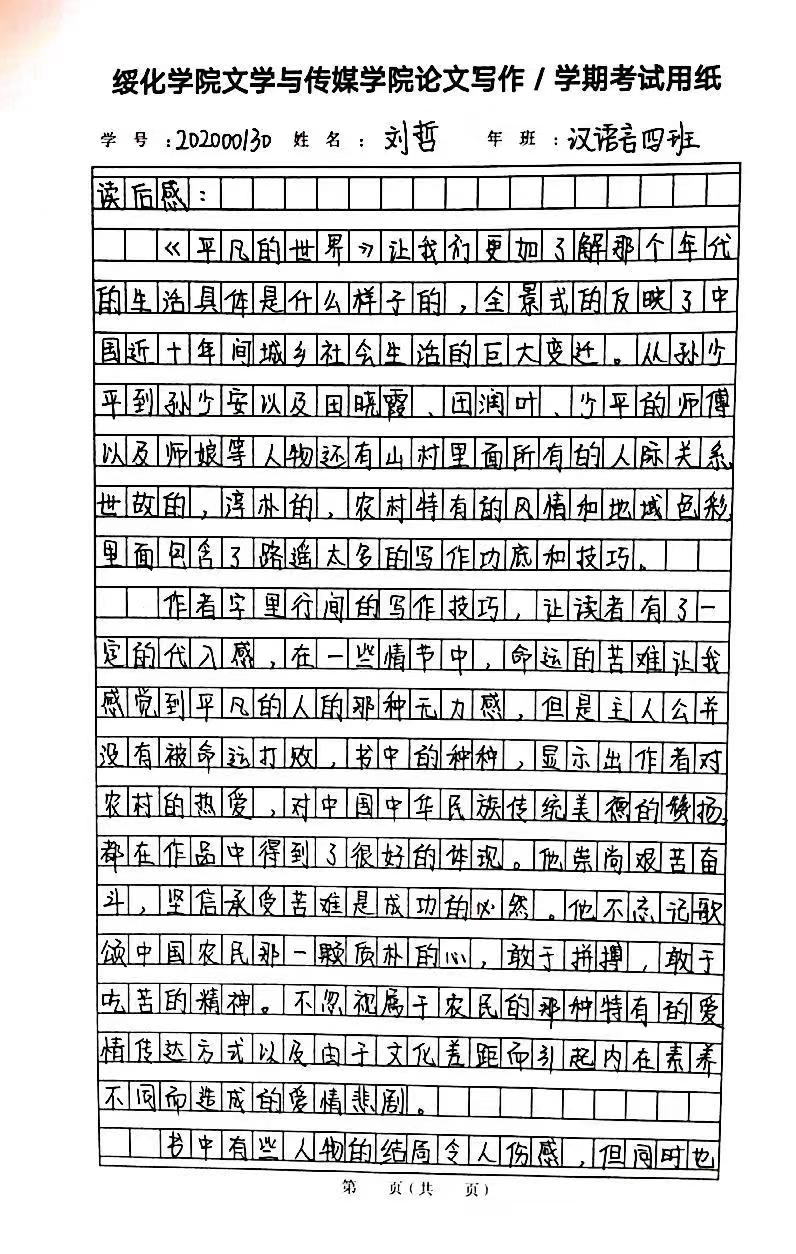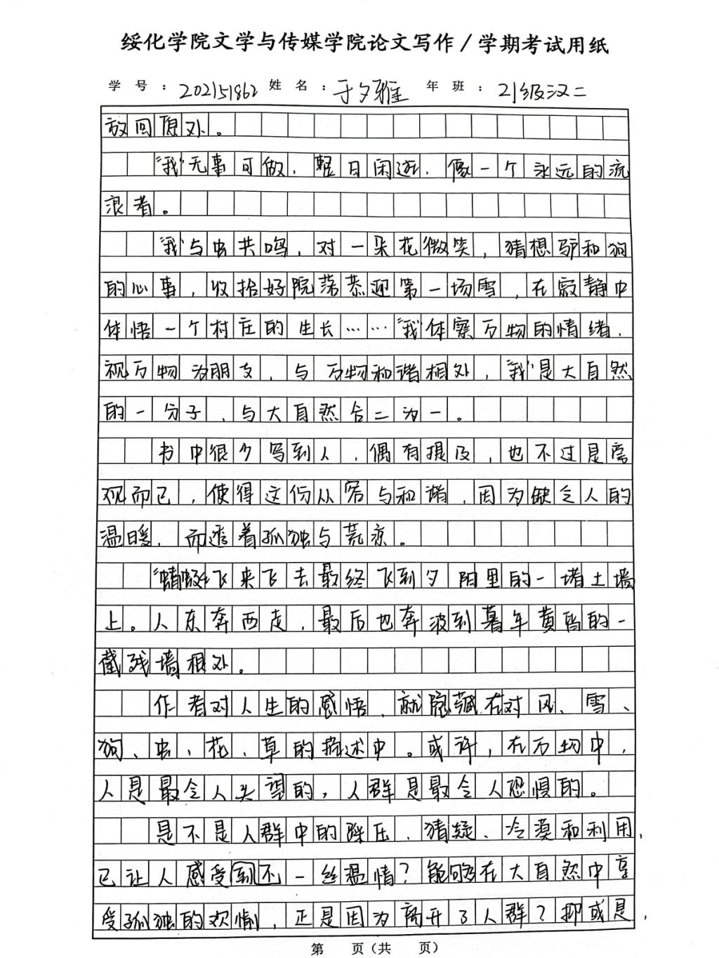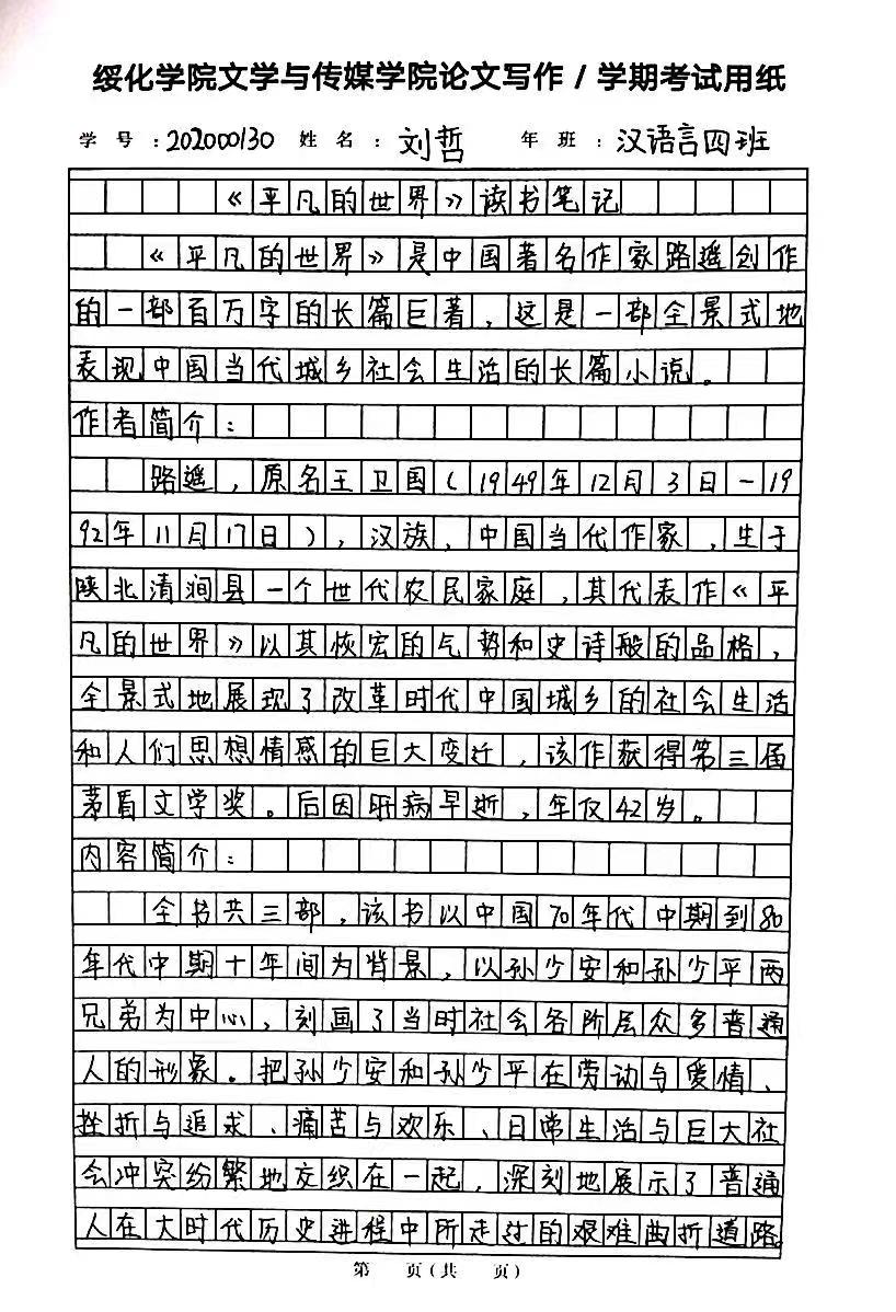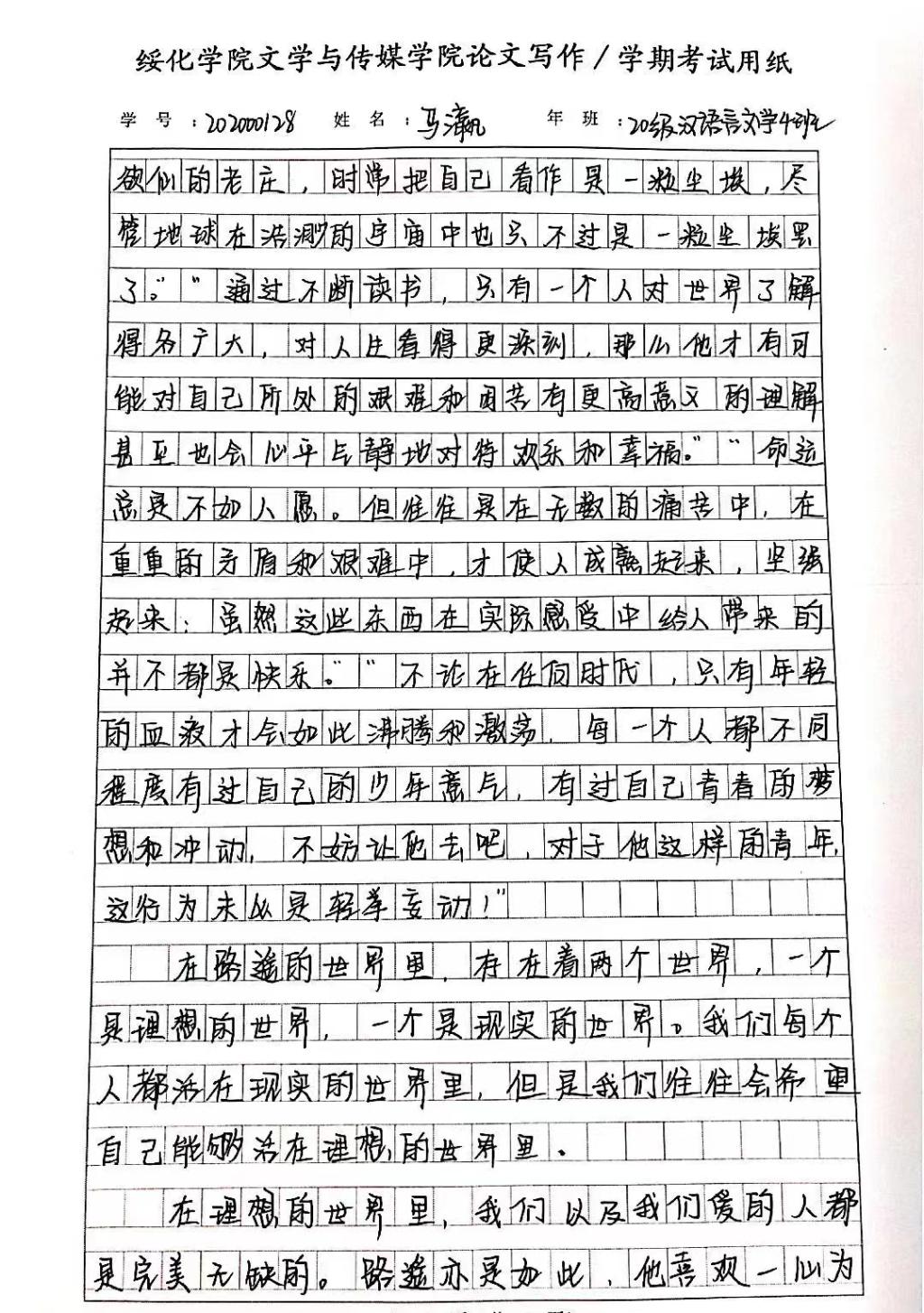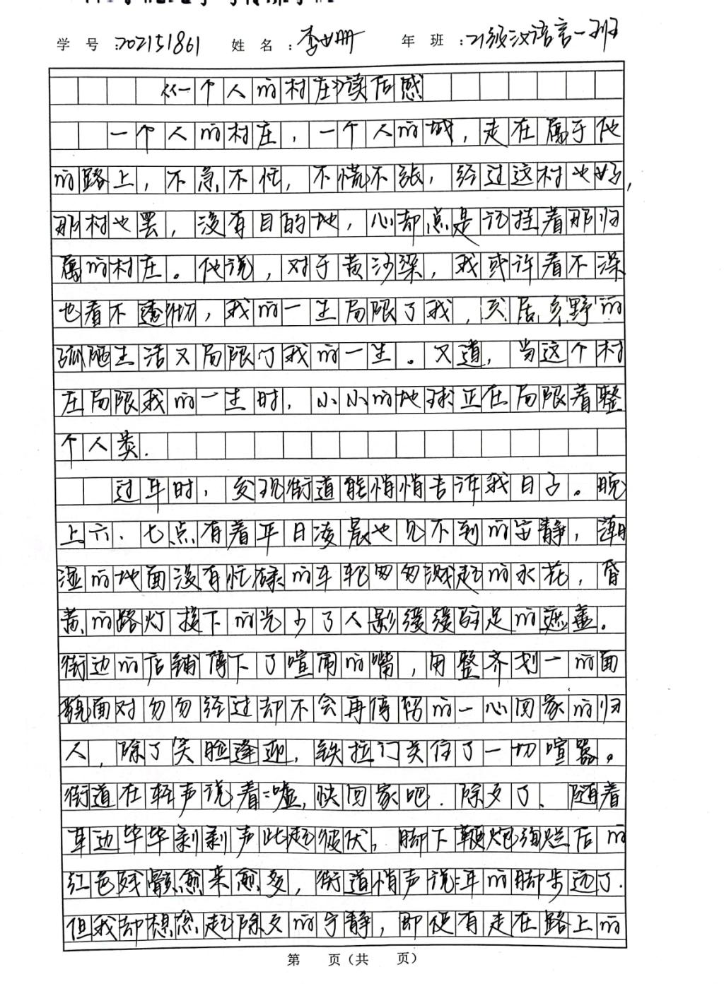 优美的文笔让人流连,美好的故事引人遐想。喜迎二十大胜利召开,PP电子游戏网站开展”“品读文学,书香共赏”活动,为优秀的作品提供平台,让飞扬的文采得以挂靠。食髓知味,落笔成文,这里是放飞思绪的一方天地,这里是共话文学的青春殿堂,我们怀言引玉,我们邀你共赏。2020级汉语言文学四班刘哲