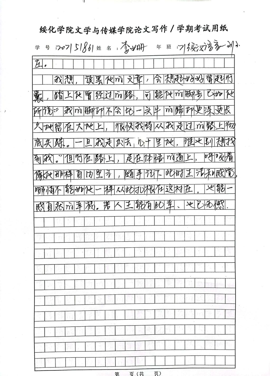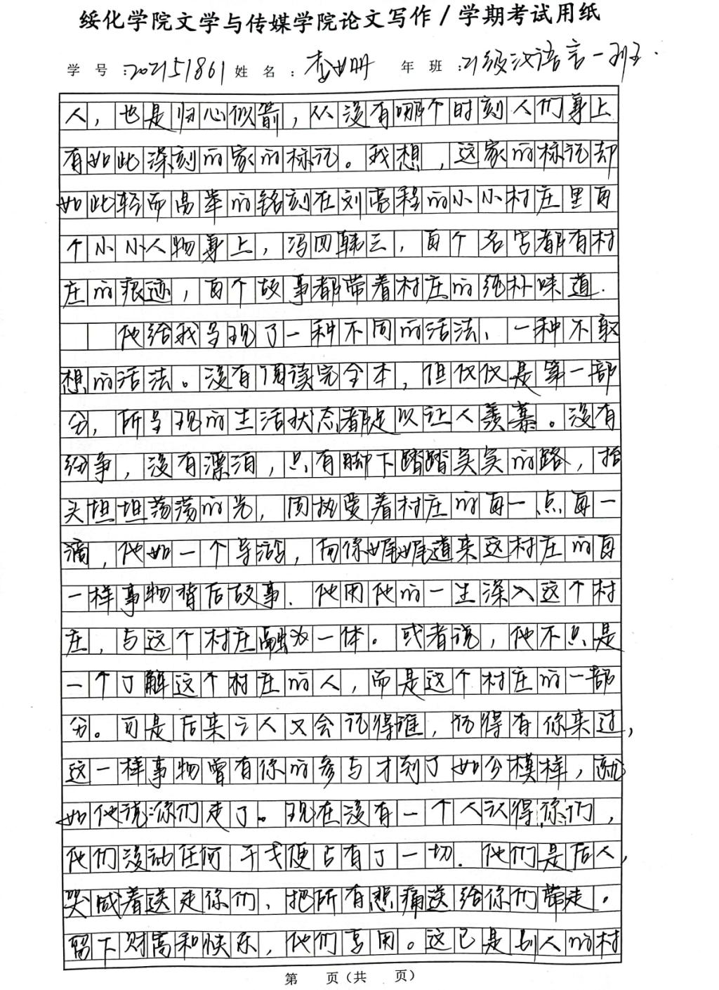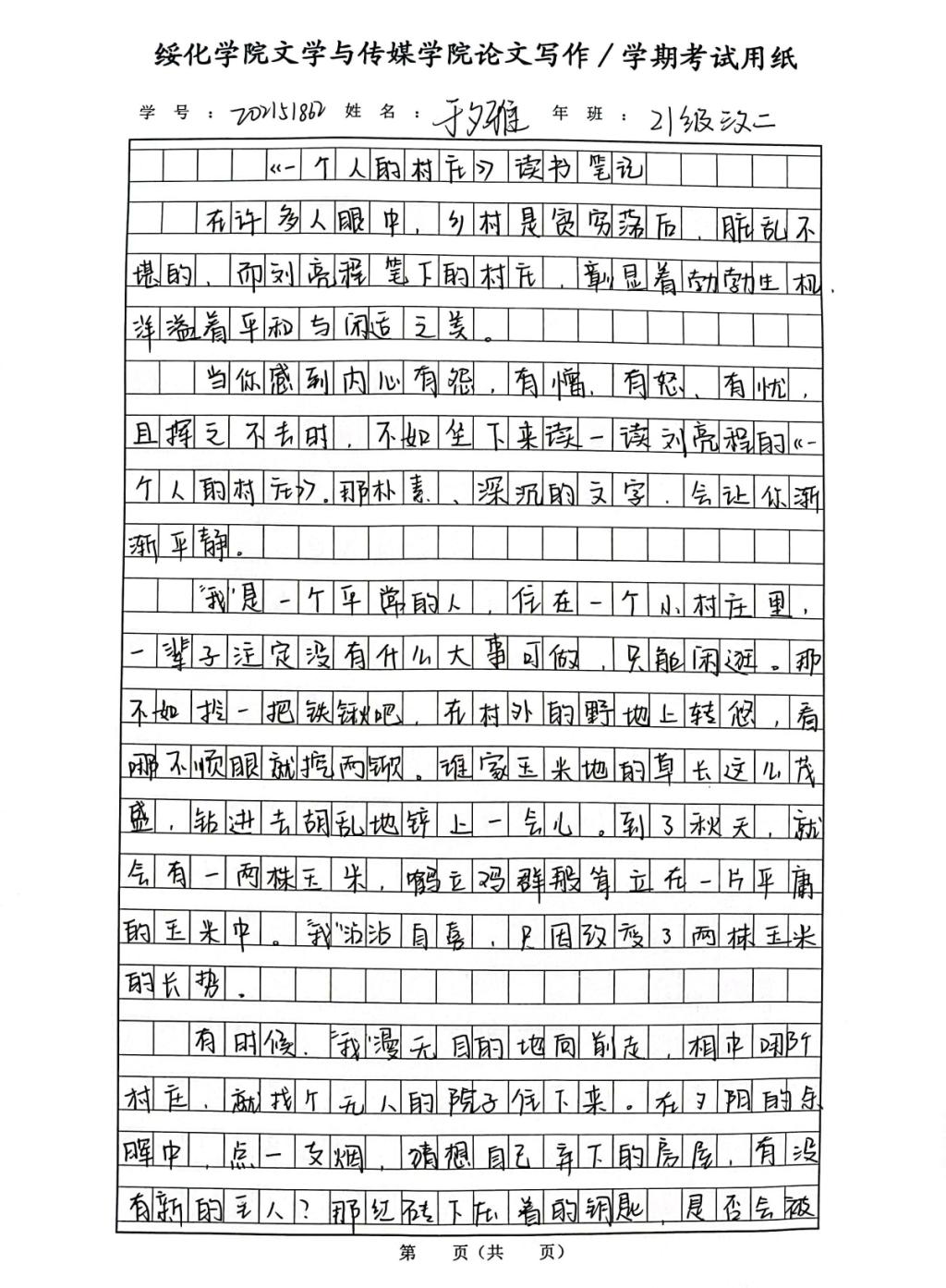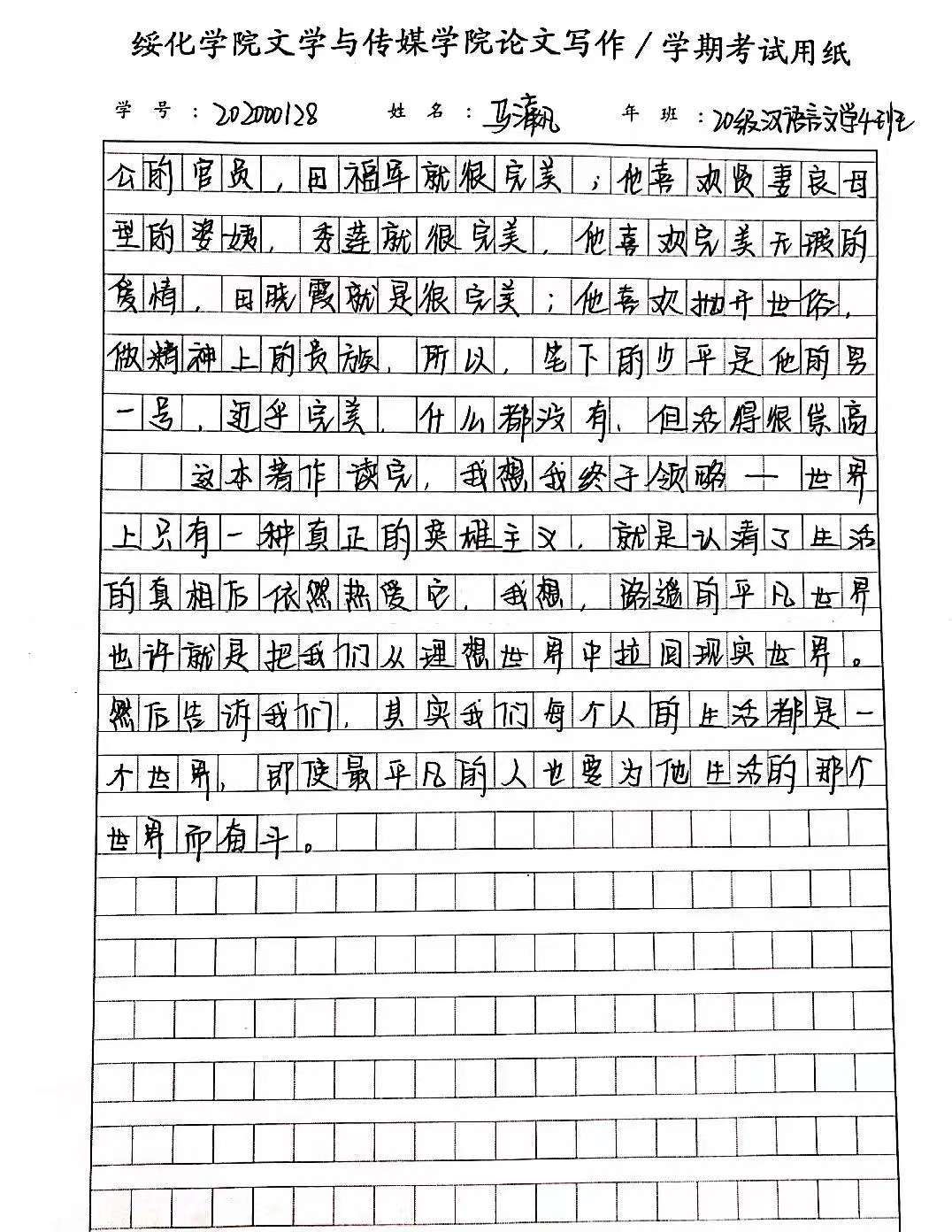 优美的文笔让人流连,美好的故事引人遐想。喜迎二十大胜利召开,PP电子游戏网站开展”“品读文学,书香共赏”活动,为优秀的作品提供平台,让飞扬的文采得以挂靠。食髓知味,落笔成文,这里是放飞思绪的一方天地,这里是共话文学的青春殿堂,我们怀言引玉,我们邀你共赏。2020级汉语言文学四班刘哲