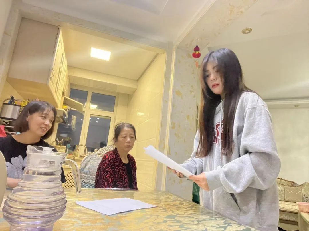吴欣遥同学以家为宣讲的主要阵地,在互联网上搜集有关党的二十大的资料,整理并打印成纸质版,向她的家人讲解党的二十大精神。