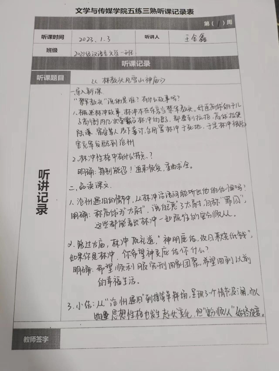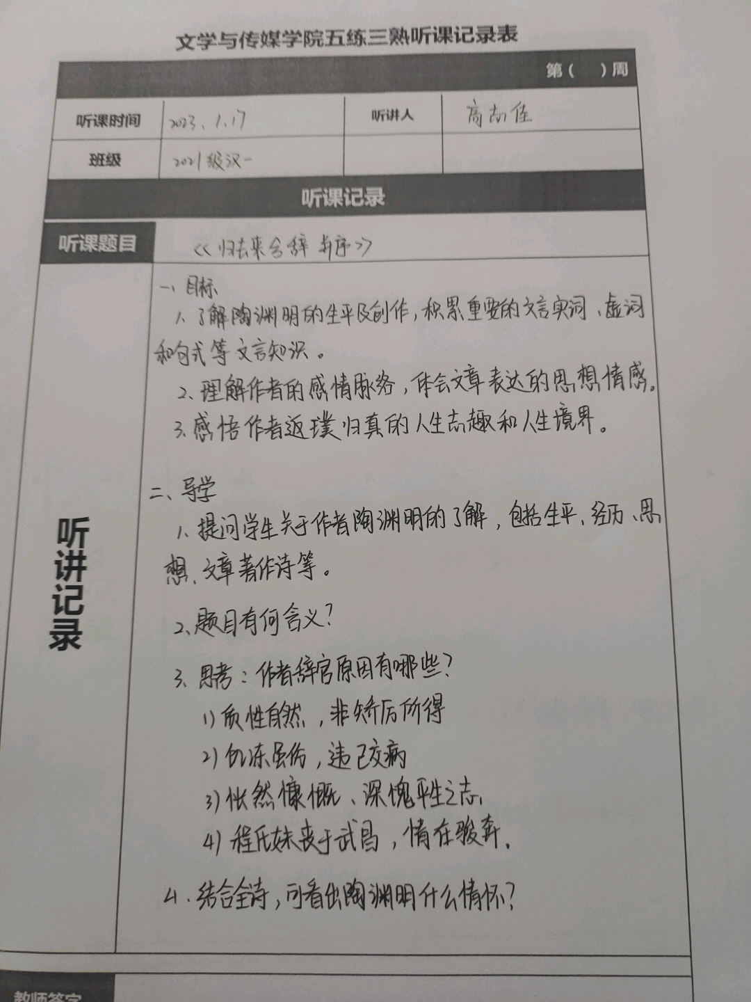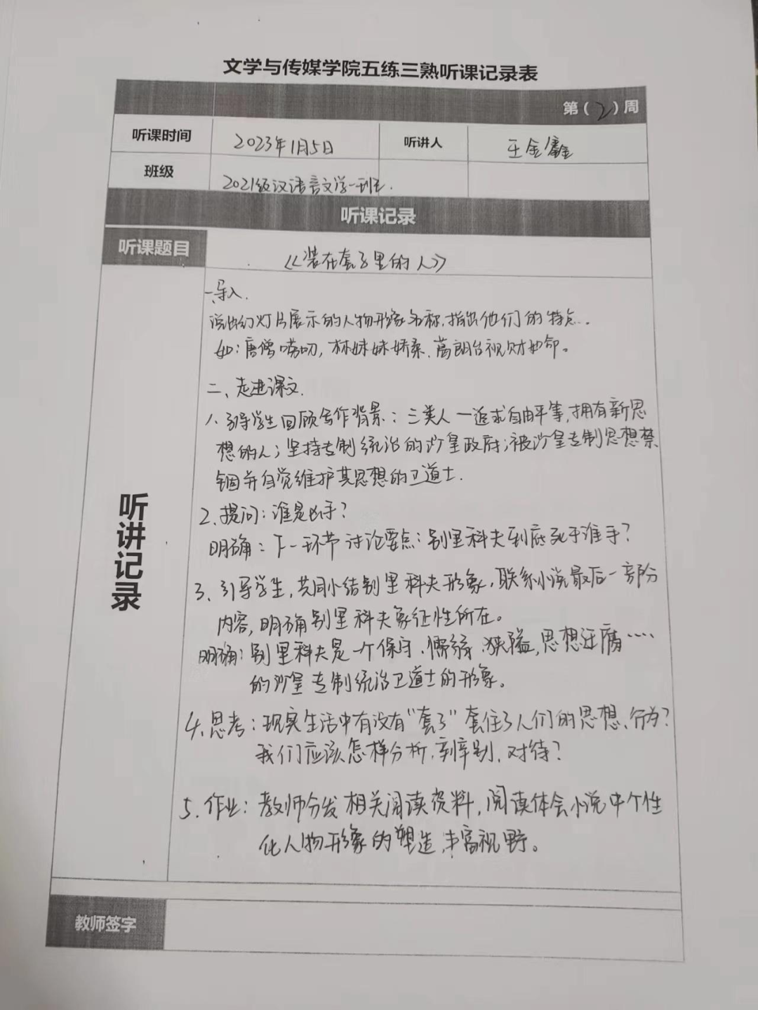听课记录是听课的第一手资料,是课后进行教学反思交流的材料和依据,更是促进教师专业成长和提高教学水平的极其宝贵财富,为使汉语言专业学生更好的学习专业技能,PP电子游戏网站特开展听课笔记优秀作品展示活动,让我们一起来看看同学们的听课记录表吧!