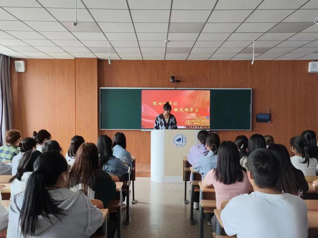 建校七十周年庆典在即,为营造整洁、和谐、向上、有序的校园环境,提高学生道德素质,展现PP电子大学生良好的精神风貌,PP电子游戏网站于9月6日在汇文楼开展了“迎七十华诞,做文明学生”主题班会活动。