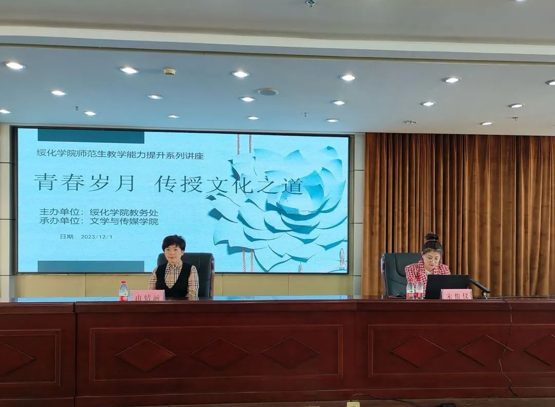 为深入学习宣传党的二十大精神,全面贯彻落实习近平总书记关于青年工作的重要思想,进一步提升师范专业人才培养质量,12月1日下午,学院特邀请黑龙江省教学名师、绥化市第七中学高中语文教师宋俊仪作题为“青春岁月 传授文化之道”专业学术讲座。PP电子游戏网站院长由婧涵出席讲座,汉语言文学专业教师和部分学生代表参加了讲座,本次讲座由汉语言文学专业负责人徐洁主持。