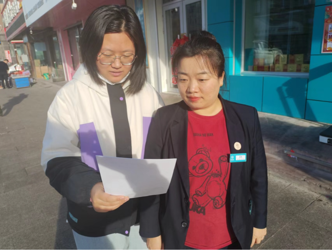 理论宣讲,延伸基层。魏欣宇同学认真地学习并宣传贯彻了党的二十大精神,在安达市区向人们宣传相关理论知识,并且做了线上的教育宣传活动。