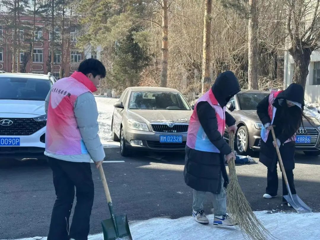 除此之外,学院还组织志愿者清扫汇文楼前积雪,志愿者们不畏严寒,齐心协力,保障了校园道路的畅通和安全,不仅强健体魄,更体会到了劳动的快乐和助人为乐的意义。