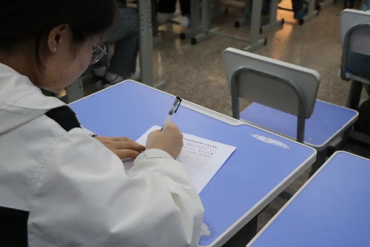 比赛现场,同学们镇定从容,信心满怀,把满腔的情感与思考在纸上纵情驰骋。在规定的时间里,一篇篇构思新颖,富有真情实感的佳作呈现在我们眼前。参赛文章内容积极向上,主旨紧扣主题,生动展示了新时代青年独立思考的能力及创新精神。本次比赛由王馨老师带领,评审老师王丹阳、徐洁、罗金秋秉承公平公正公开的原则,从文章内容、语言表达、创意与创新及结构与逻辑四个方面对参赛文章进行评分。