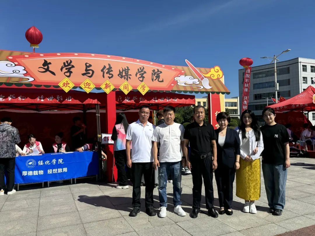 追逐梦想的列车驶向新的地点,故事翻开新篇章。为了帮助新生顺利完成报到,学校西门处设立了迎新接待点,学院领导走访迎新点,面对面了解迎新工作进展动态,用亲切的话语给予关怀,为初次踏入校园的新生带来了最真切的关怀。文院志愿者们站在校园门口,欢迎新生的到来。这是一代一代的传承与延续,我们将爱与温暖带到这里,希望你们将温暖延续。