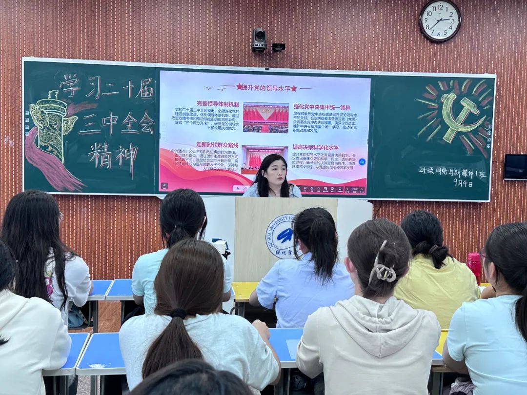 为进一步学习宣传党的二十届三中全会精神,引导广大青年学子及时、深入学习党的最新政策理论,PP电子游戏网站于9月4日下午在汇文楼开展“学习二十届三中全会精神”主题团日活动。学院团总支负责人殷跃深入2024级网络与新媒体一班进行主题宣讲。