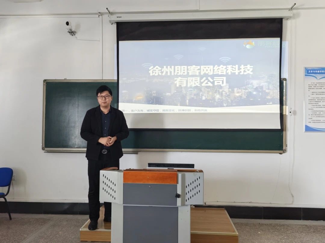 为拓宽学生就业渠道,提升就业质量,加大就业生选择。10月16日,徐州朋客网络科技有限公司在汇文楼 713 举行就业宣讲会。