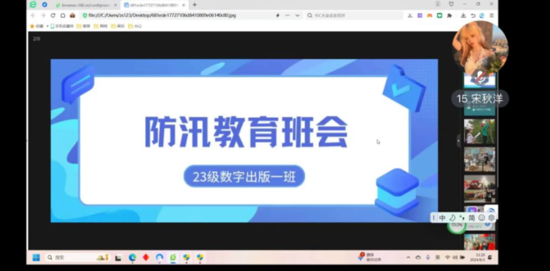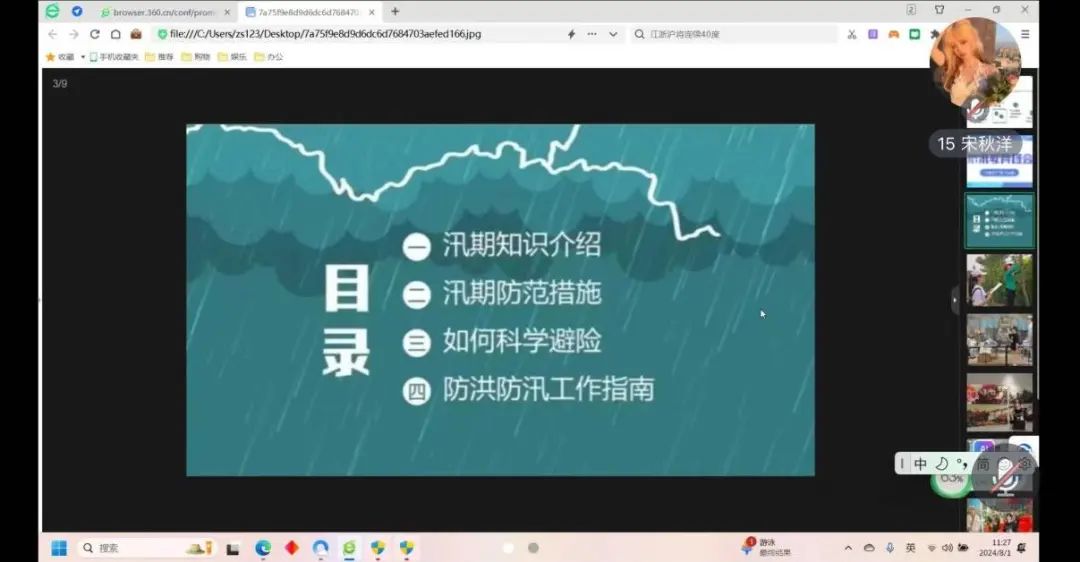 近期强降雨或连续性降雨等恶劣天气频繁发生,容易引发洪涝、泥石流、滑坡,大风等自然灾害的发生。为了预防和杜绝安全事故发生,进一步增强防汛意识,切实保障生命安全,确保广大学生安全、愉快地度过暑假,由辅导员于小庆带队,采用线上的方式,PP电子游戏网站各班就开展学生防汛教育与提示工作召开班会。