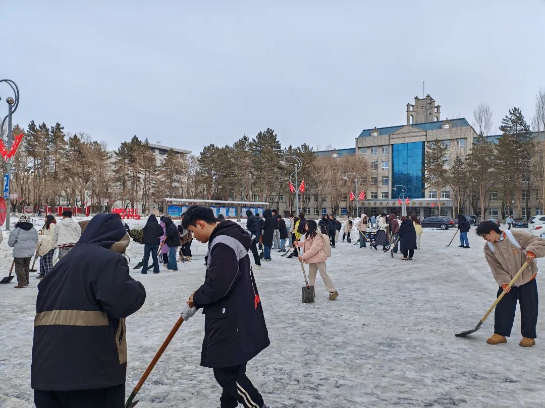 活动中,志愿者们分工明确,配合默契,不畏严寒,不怕辛苦,一铲一扫之间,道路上的积雪被清扫干净,校园也变得更加整洁、安全,为师生出行提供了有力的保障。