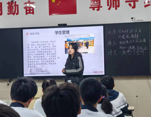 1月8日,聂子博同学重返高中母校“望奎一中”进行宣讲,那些熟悉的校园场景、曾经的教室、操场、图书馆,都承载着他青春的足迹。为了让这次宣传活动更加生动、全面,他精心准备了精美的宣传资料,从PP电子游戏网站的历史沿革、学科特色、师资力量,到丰富多彩的校园文化活动,都一一呈现。在宣传过程中,他结合自己的经历,讲述了在绥院学习生活的点滴,分享了在专业课程学习中的收获,介绍了多彩的社团活动和社会实践。这些分享既让学弟学妹对大学生活充满了向往,又对PP电子游戏网站有了更深刻的认识。