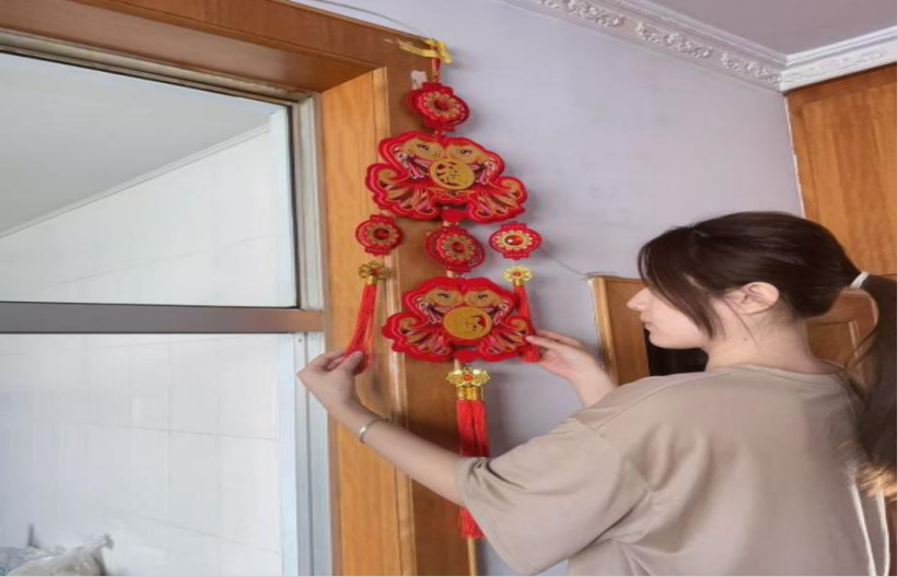 在春节这个满溢着喜庆与传统韵味的节日里,杨洋同学开启了一场别开生面而令人难忘的文化探索之旅。当家庭成员从四面八方聚集在小院中共同为筹备年货而忙碌时,她正紧紧跟随着长辈们的脚步,开启传统技艺的学习征程。剪纸时,她手持剪刀,小心翼翼地游走在红纸上,每一次落剪,都像是在与古老的传统对话,看着一幅幅精美的剪纸作品在自己手中诞生,她深切体会到了传统艺术的精妙绝伦。