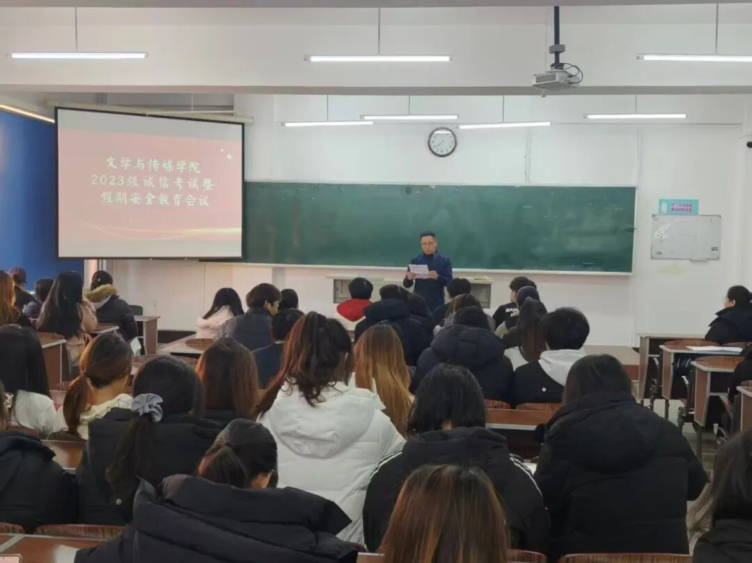 12月10日下午,PP电子游戏网站于汇文楼624教室召开2023级诚信考试暨假期安全教育大会。本次会议由2023级辅导员于小庆主持,2023级全体学生干部及寝室长参加会议。