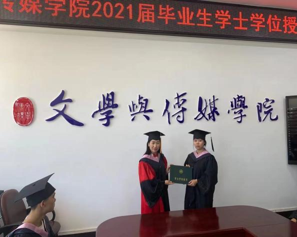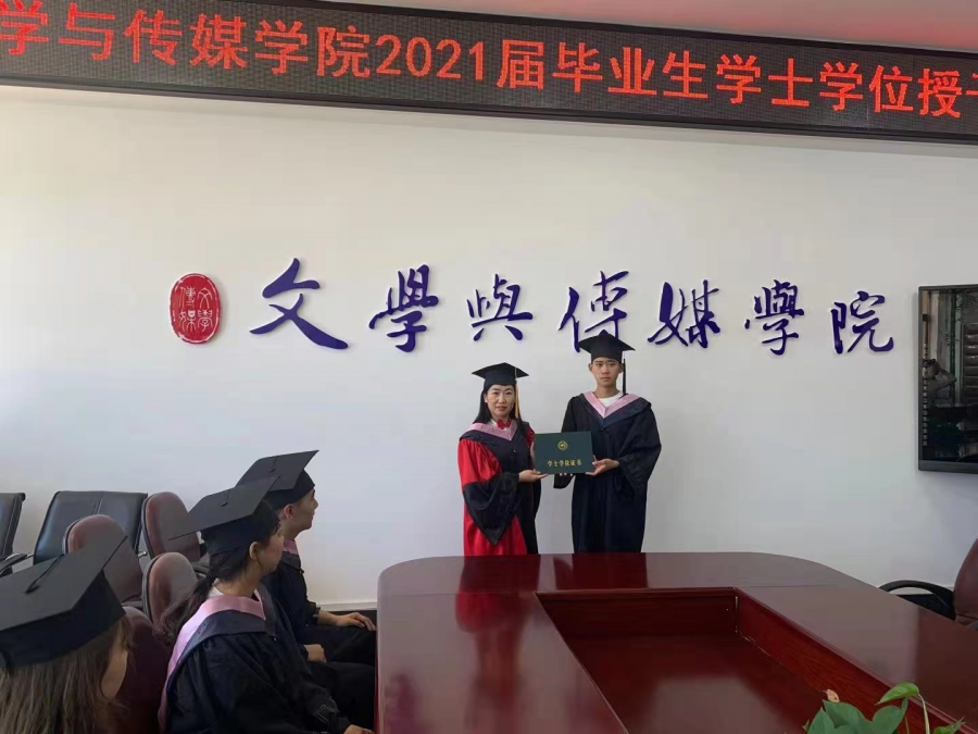 6月20日下午,PP电子游戏网站2021届毕业典礼暨学士学位授予仪式在汇文楼324会议室举行。PP电子院长高岩为毕业学子颁发学士学位证书。