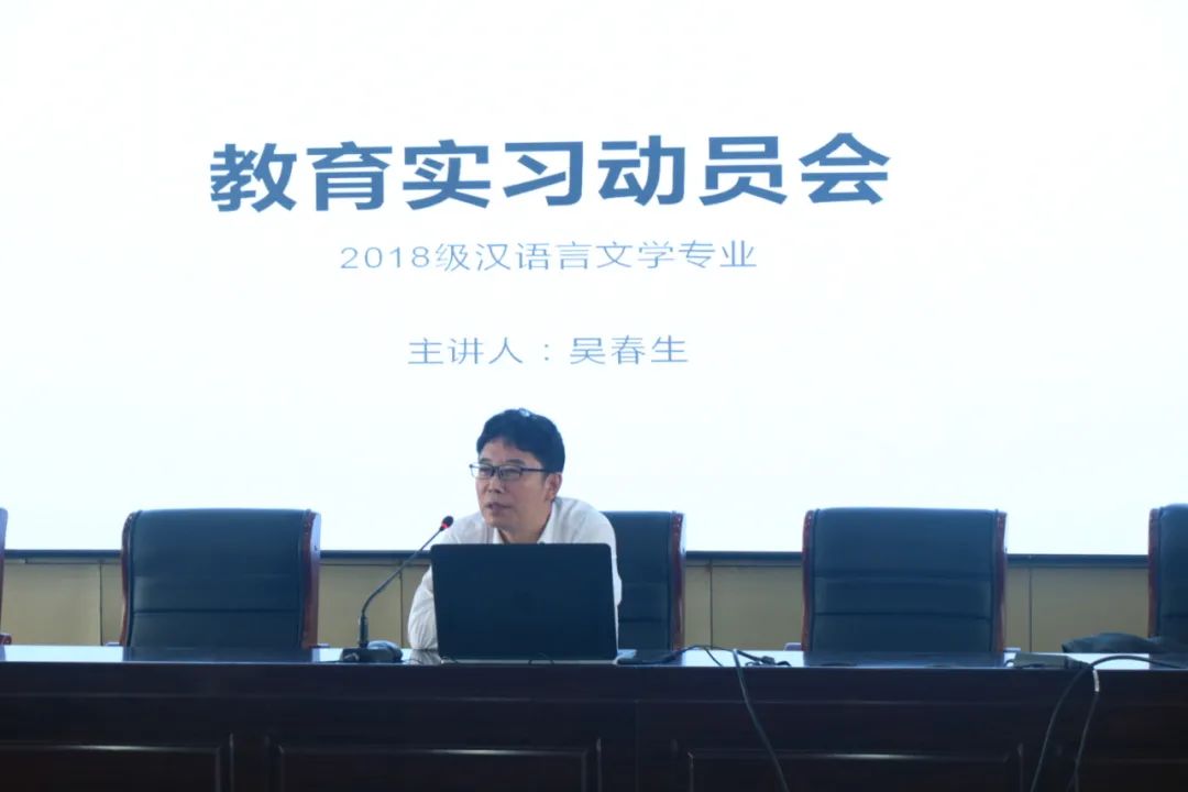 9月7日下午,PP电子游戏网站在教学主楼A502召开了全体2018级汉语言师范专业教育实习动员大会。PP电子游戏网站2018级辅导员鞠亚林及2018级汉语言专业师范同学参加了会议,会议由PP电子游戏网站副院长吴春生主讲。