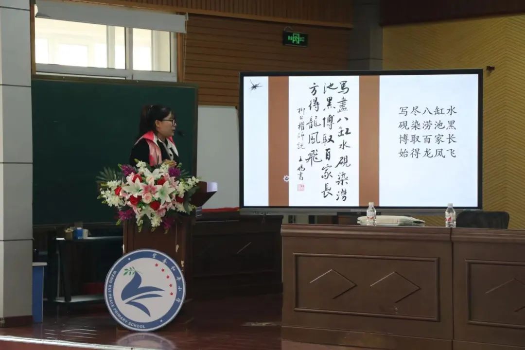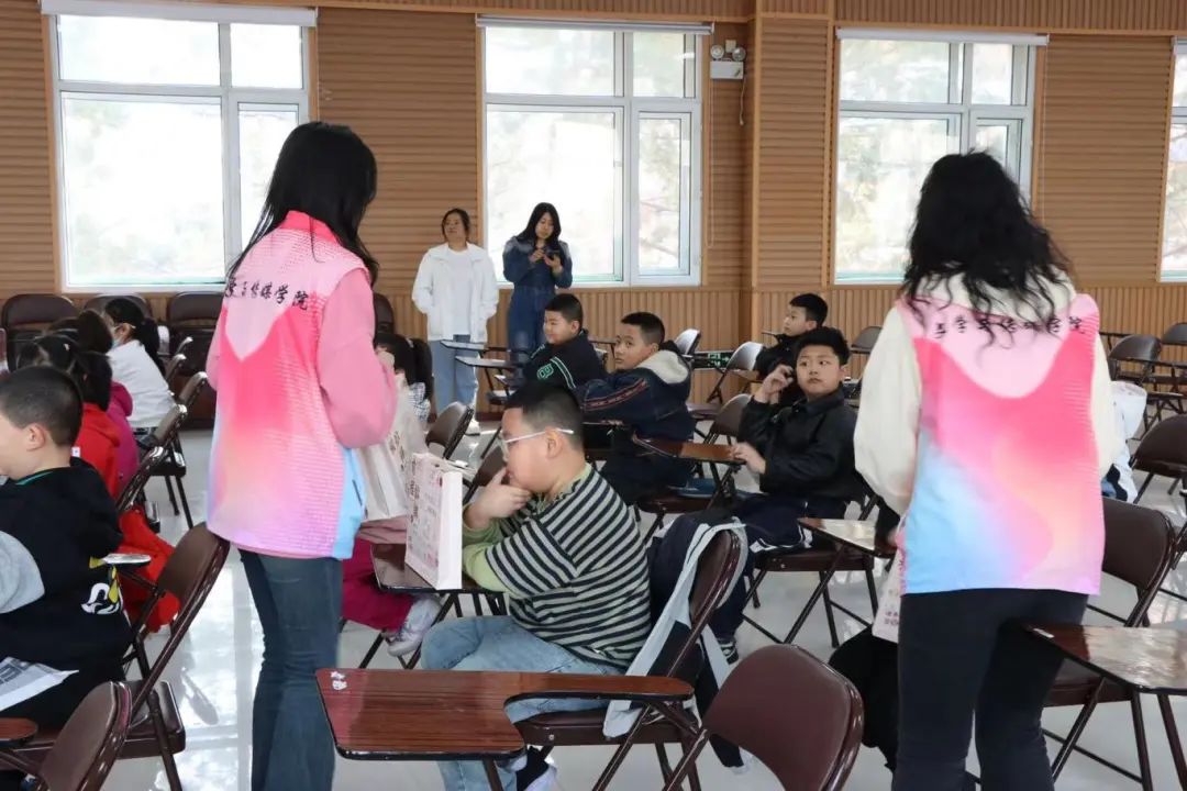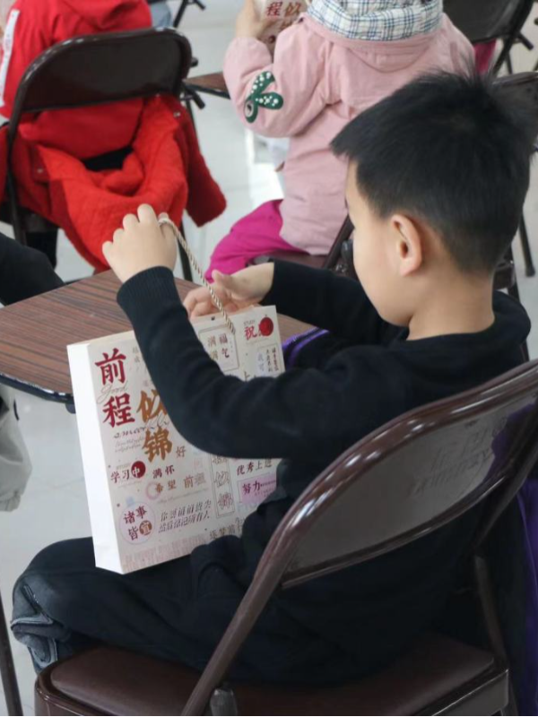 欢声笑语中,活动拉开了序幕。志愿者们首先向孩子们分发了精心准备的纪念品,学院书法社社长孟研以《书法技巧与鉴赏》为题为孩子们讲解了汉字的演变过程并示范了标准的书写技巧,孩子们聚精会神地聆听讲解,积极热情地讨论交流。在志愿者的悉心指导下,挥毫泼墨,行云流水,在一横一竖中领悟汉字之韵,在一撇一捺中体味书写之乐。除此之外,志愿者们还通过互动游戏与故事分享,使孩子们深深感受书法艺术的独特魅力。