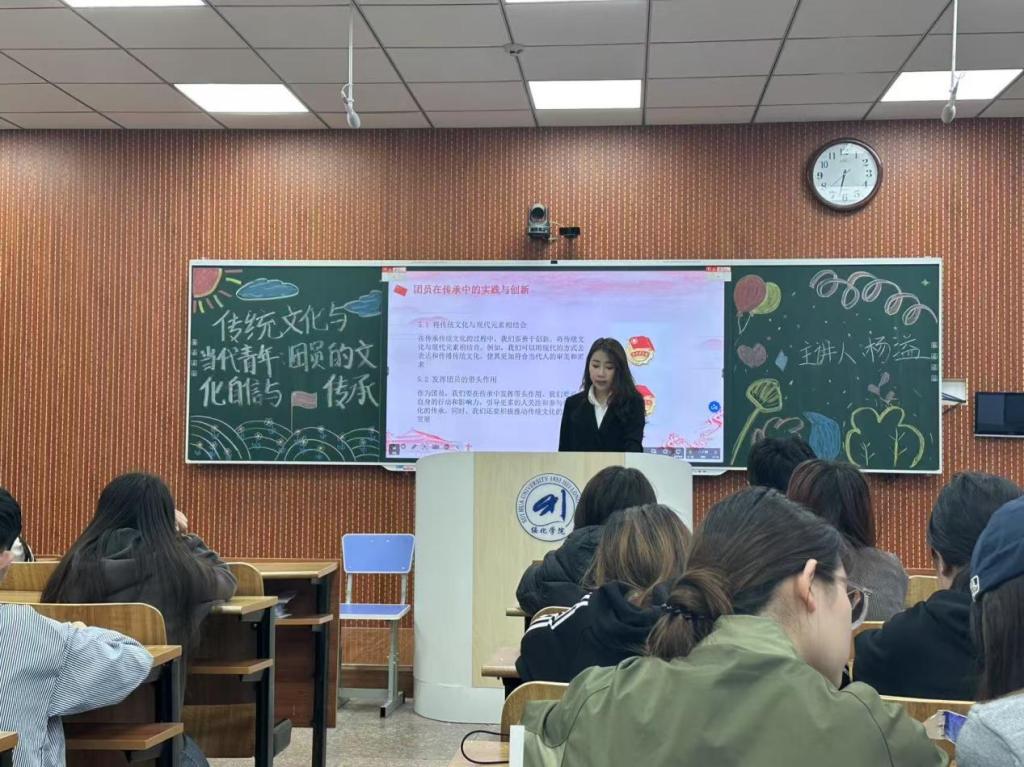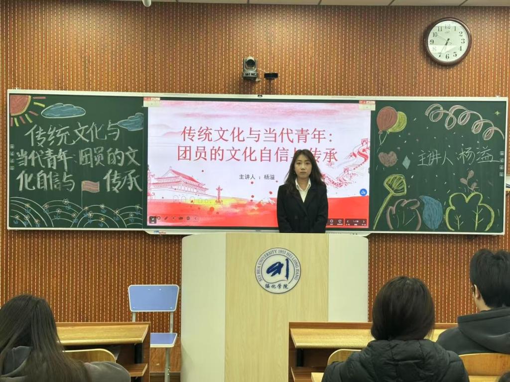 为深入贯彻落实习近平总书记关于弘扬中华优秀传统文化的重要论述,引导入团积极分子坚定文化自信,3月19日,PP电子入团积极分子第二次主题团课在汇文楼313教室举行。主讲人杨溢以“传统文化与当代青年:团员的文化自信与传承”为主题为大家进行讲解。